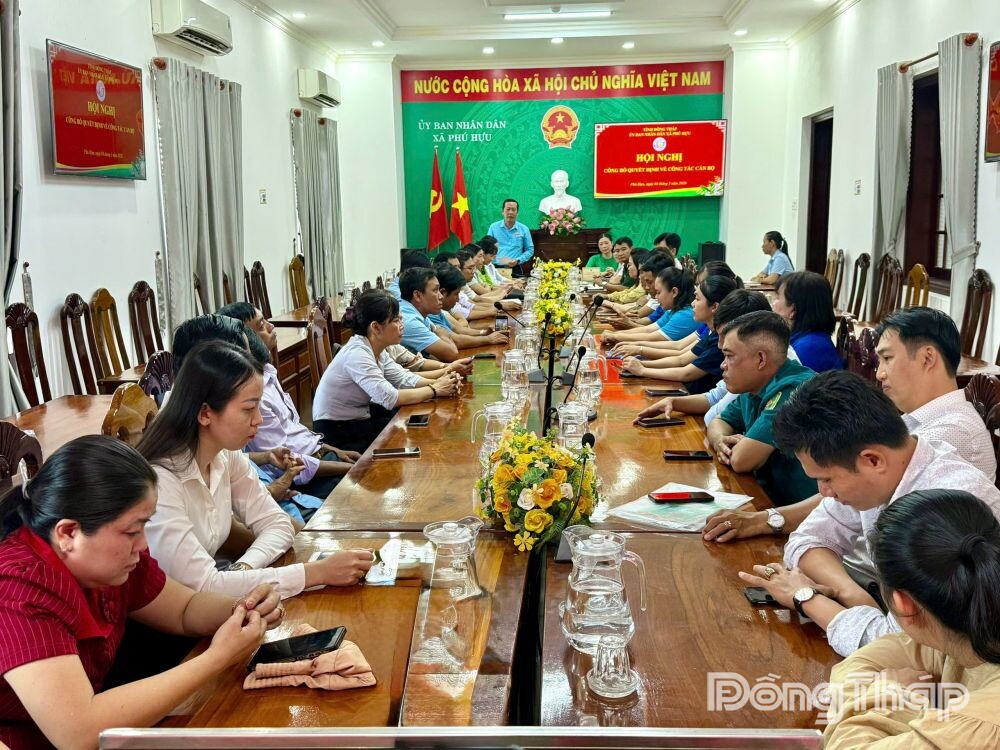 Tham dự hội nghị có đồng chí Lê Minh Trung, Bí thư Đảng ủy, Chủ tịch HĐND xã; đồng chí Võ Thị Bình, Chủ tịch UBND xã cùng đại diện các cơ quan, ban, ngành, đoàn thể xã.