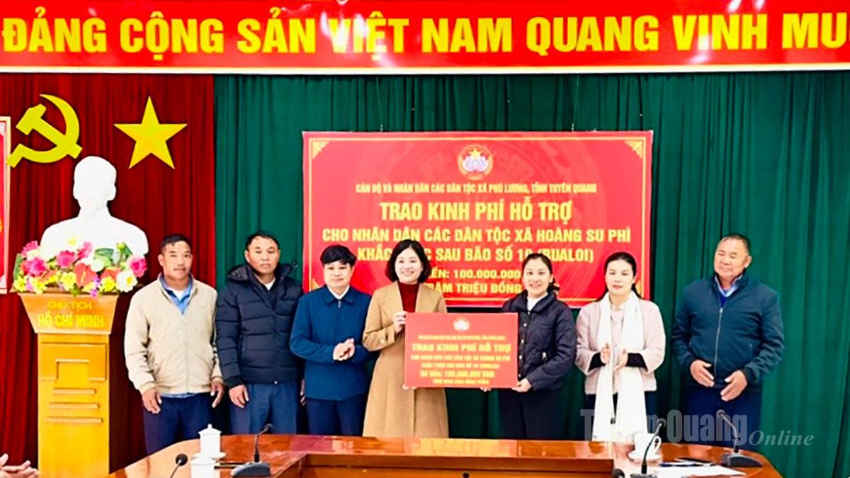 Tại chương trình, lãnh đạo xã Phú Lương đã trực tiếp trao số tiền hỗ trợ xã Hoàng Su Phì là 100 triệu đồng và xã Thàng Tín 100 triệu đồng.