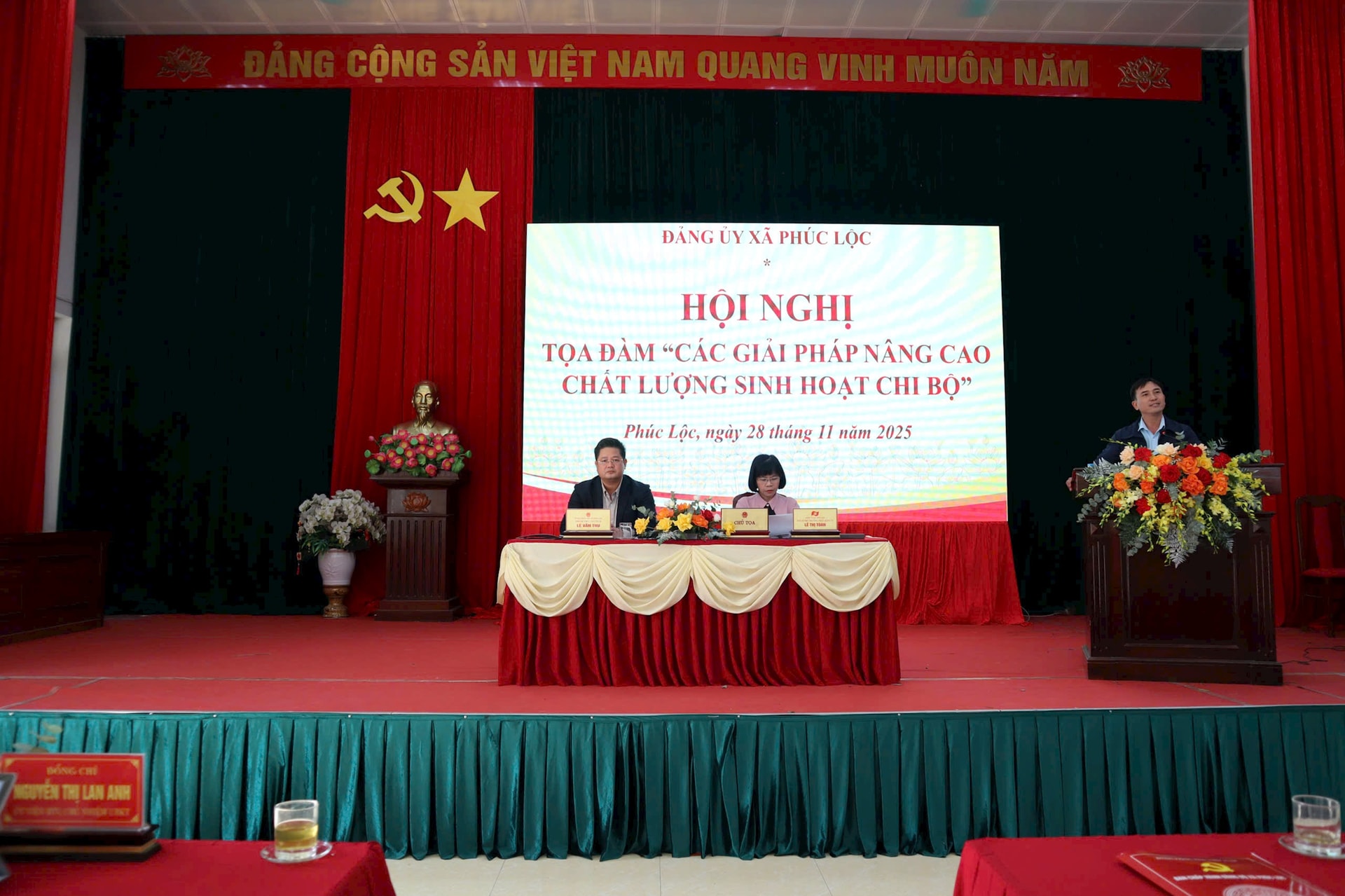 Tọa đàm “Các giải pháp nâng cao chất lượng sinh hoạt chi bộ” do Đảng ủy xã Phúc Lộc tổ chức. Ảnh: Minh Phú