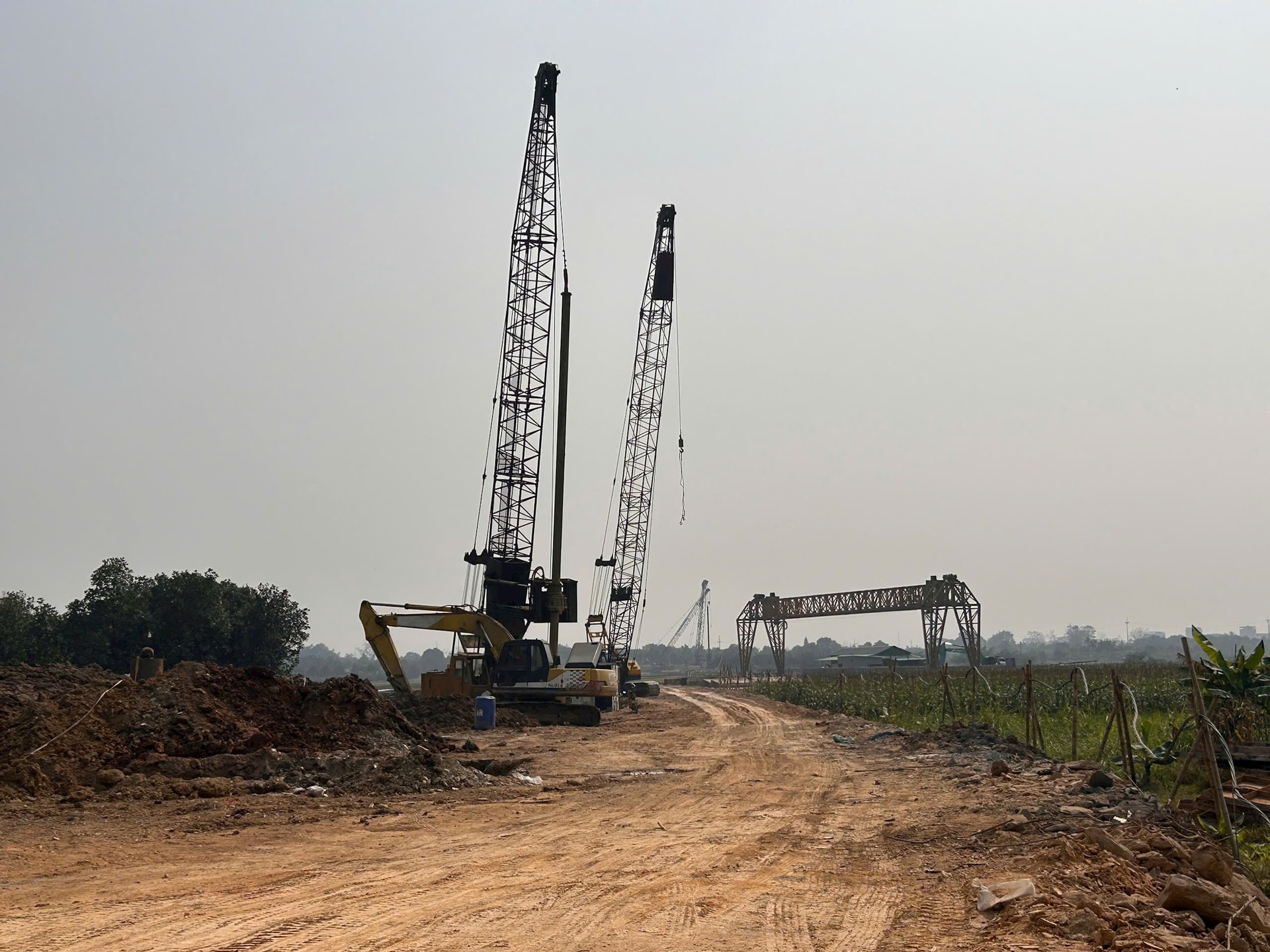 Dự án đầu tư xây dựng cầu Vân Phúc và tuyến đường nối ra Quốc lộ 32 đang được triển khai thi công. Ảnh: Nguyễn Mai