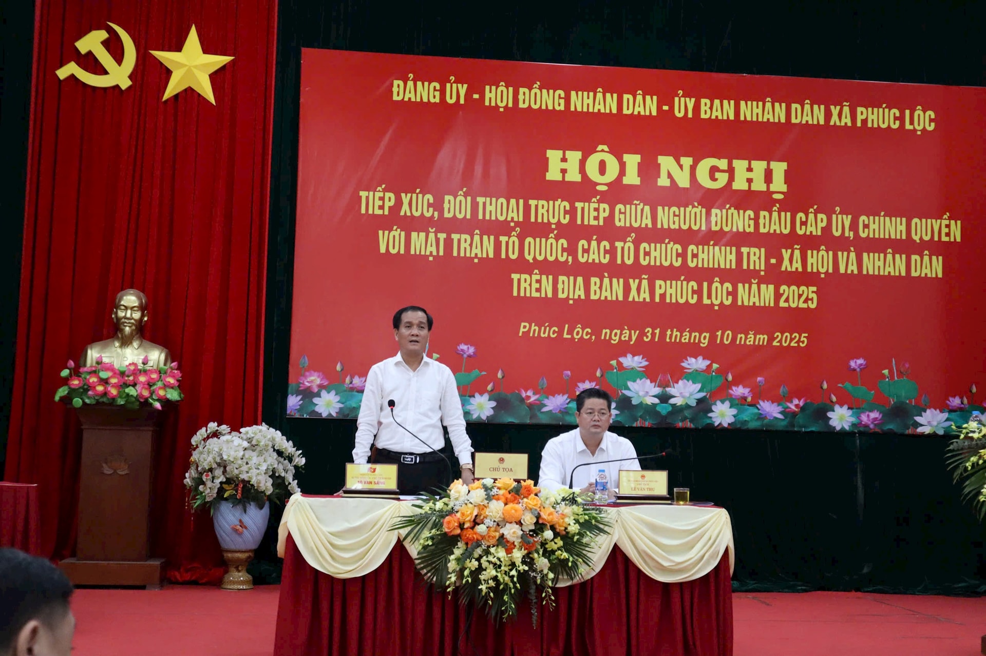 Các đồng chí lãnh đạo xã Phúc Lộc chủ trì buổi đối thoại. Ảnh: Nguyễn Mai