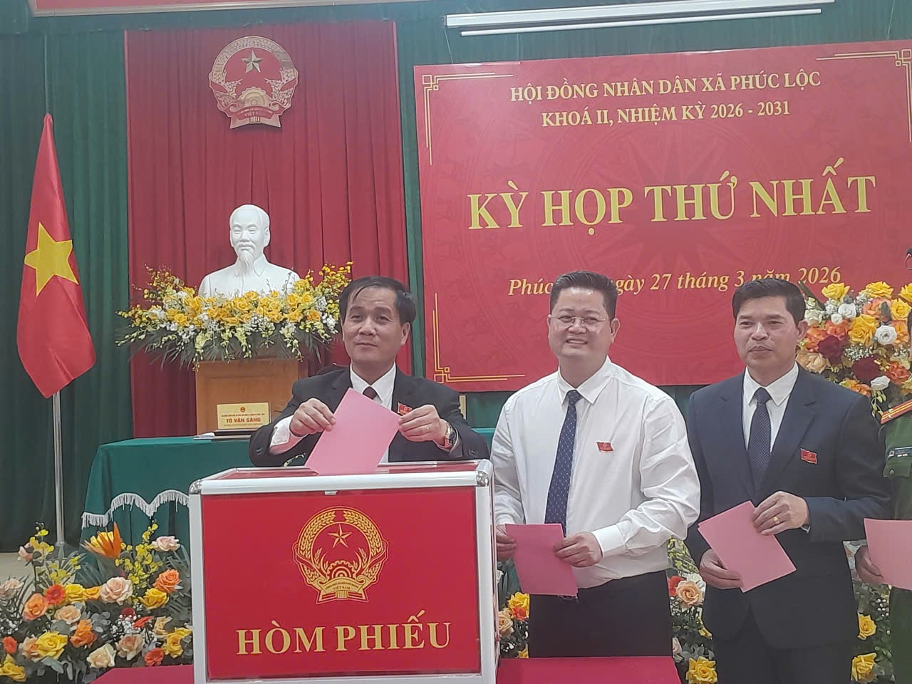 Đại biểu bầu các chức danh chủ chốt của HĐND xã và UBND xã Phúc Lộc . Ảnh: Nguyễn Hưng