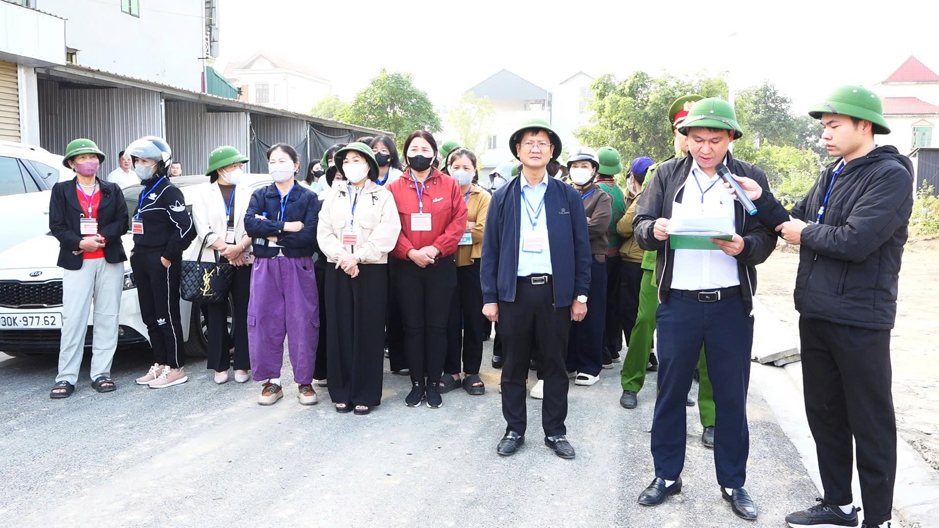 Lãnh đạo Ban Quản lý dự án đầu tư - hạ tầng xã Phúc Thịnh đọc quyết định cưỡng chế. Ảnh: Trọng Công