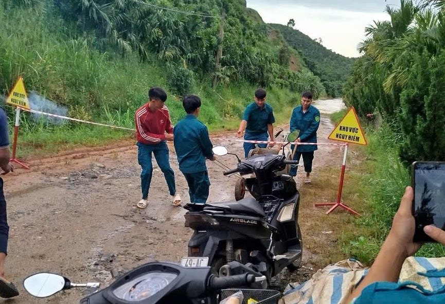 Lực lượng chức năng tiến hành giăng dây, biển cảnh báo