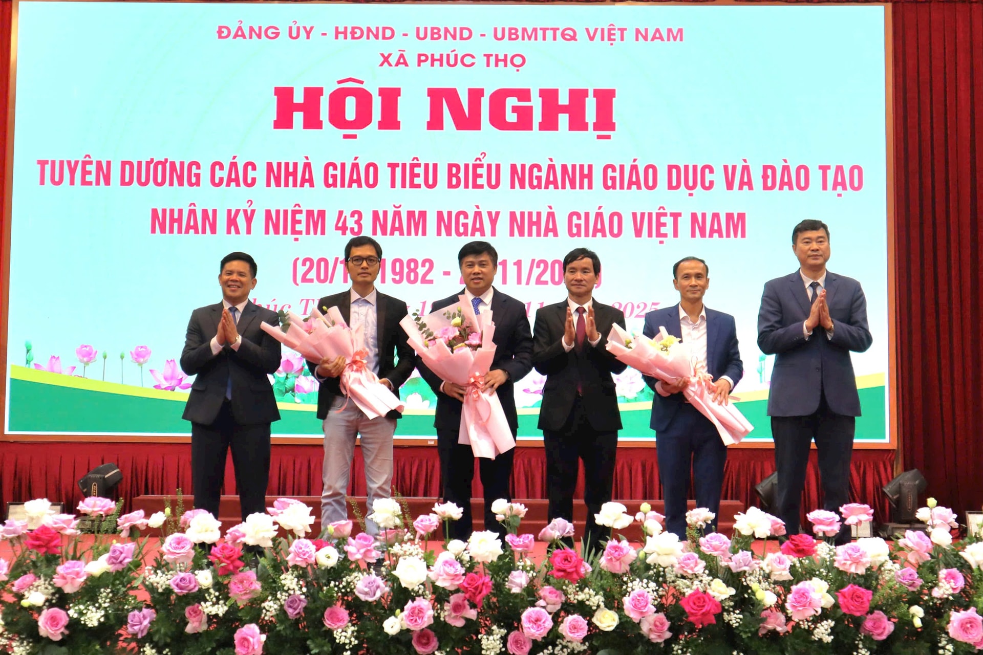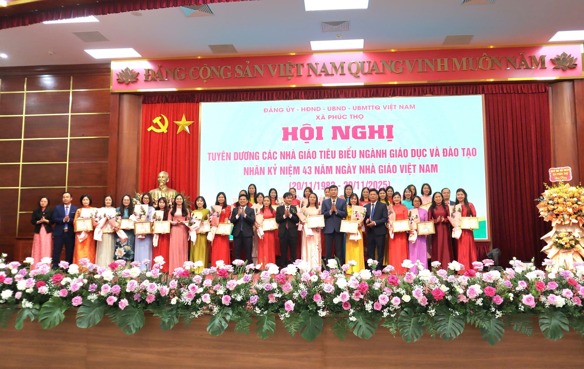 Tại buổi lễ, lãnh đạo xã Phúc Thọ đã tặng hoa chúc mừng Phòng Văn hóa – Xã hội, các thầy cô giáo và những người con quê hương đang công tác tại các trường đại học. Dịp này, xã cũng khen thưởng 27 cá nhân tiêu biểu, ghi nhận những thành tích xuất sắc trong năm học vừa qua.