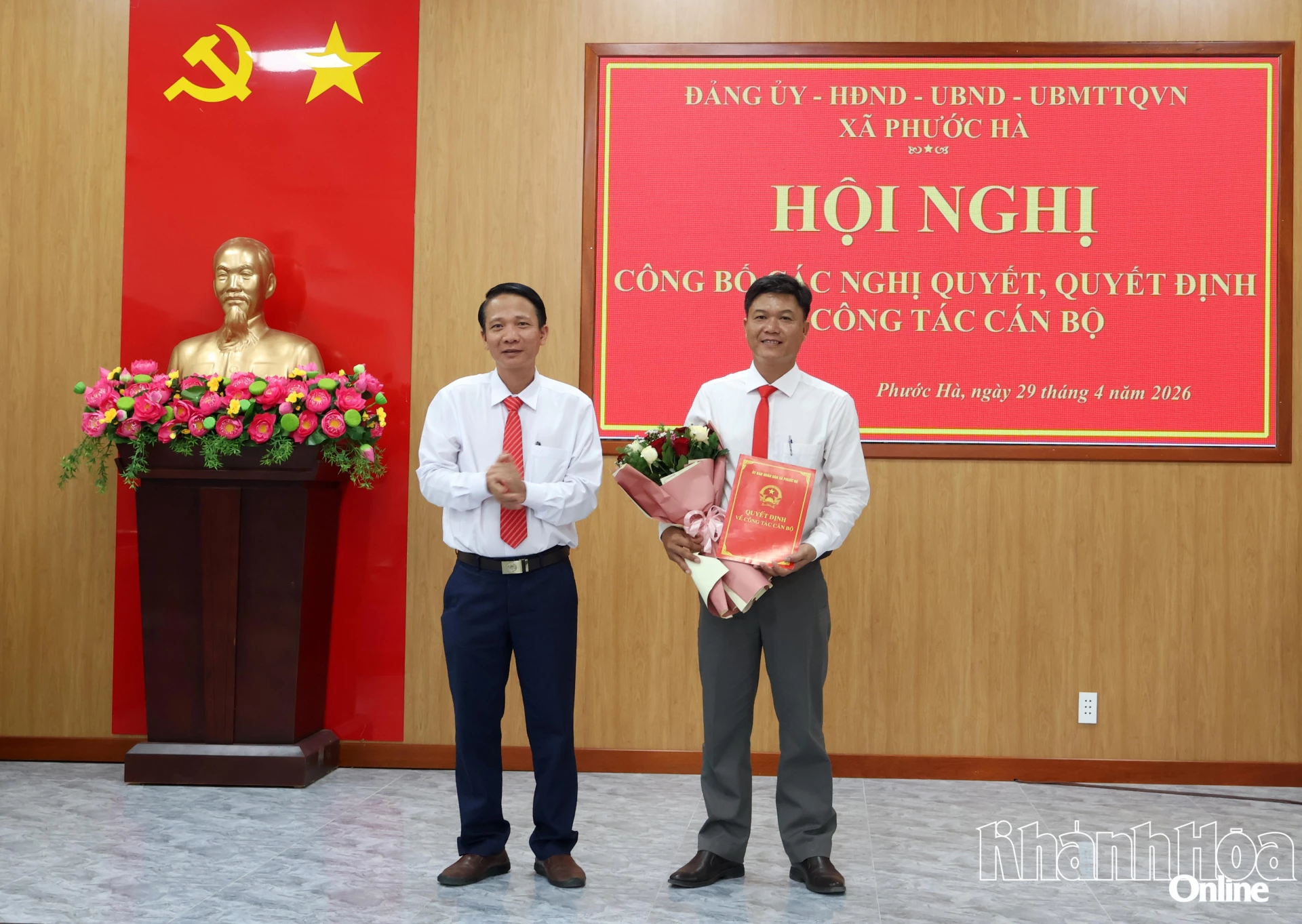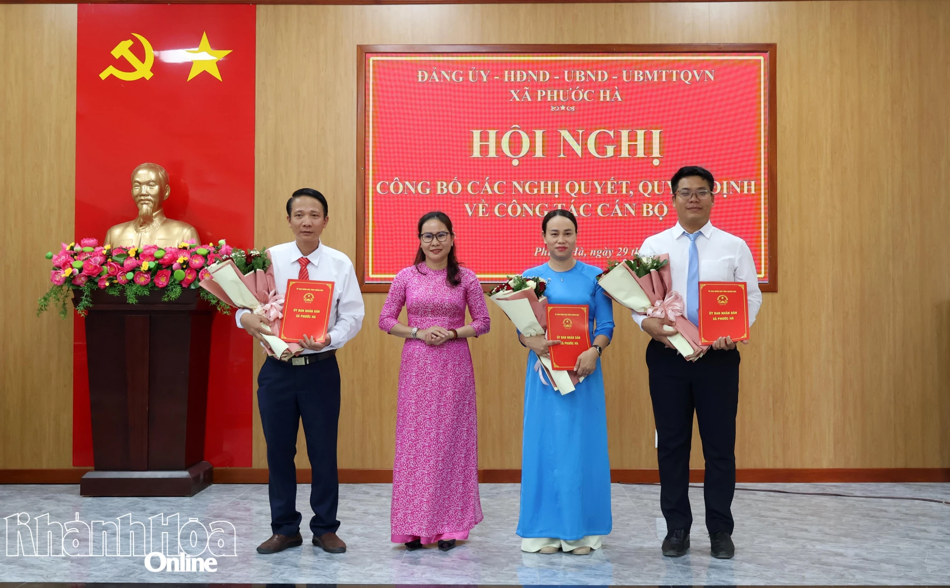 Hội nghị cũng công bố Quyết định của Chủ tịch UBND tỉnh Khánh Hòa phê chuẩn kết quả bầu chức vụ Chủ tịch UBND xã Phước Hà nhiệm kỳ 2026 - 2031 đối với ông Kiều Tấn Đạt - Phó Bí thư Đảng ủy xã, Chủ tịch UBND xã Phước Hà nhiệm kỳ 2021 - 2026; phê chuẩn kết quả bầu chức vụ Phó Chủ tịch UBND xã Phước Hà nhiệm kỳ 2026 - 2031 đối với bà Bùi Thị Duyên Hải - Ủy viên Ban Thường vụ Đảng ủy xã, Phó Chủ tịch UBND xã Phước Hà nhiệm kỳ 2021 - 2026 và ông Phan Nguyễn Hoàng Long - Ủy viên Ban Chấp hành Đảng bộ xã, Phó Chủ tịch UBND xã Phước Hà nhiệm kỳ 2021 - 2026.
