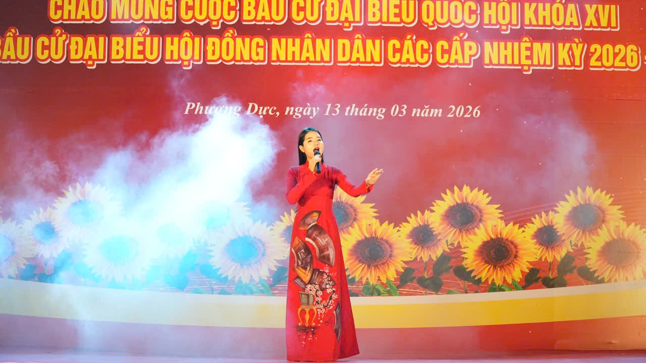 Ca khúc "Từ làng sen" do nghệ sĩ Thanh Huyền biểu diễn tại đêm nghệ thuật. Ảnh: TV