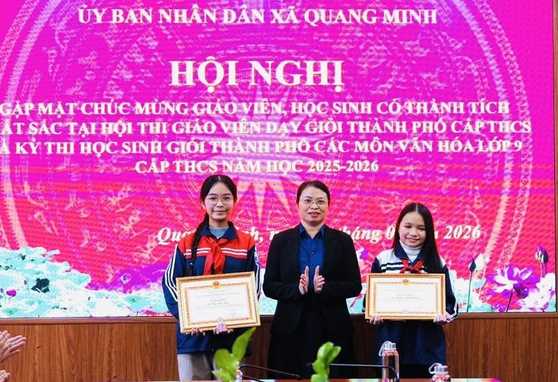 Xã Quang Minh luôn xác định giáo dục là nhiệm vụ trọng tâm, là nền tảng phát triển nguồn nhân lực và tương lai của địa phương. Trong thời gian tới, UBND xã tiếp tục quan tâm đầu tư cơ sở vật chất trường lớp, tạo điều kiện thuận lợi cho công tác dạy và học. Lãnh đạo xã Quang Minh mong muốn đội ngũ giáo viên tiếp tục đổi mới phương pháp giảng dạy, giữ vững nhiệt huyết với nghề; các em học sinh lấy thành tích hôm nay làm động lực để tiếp tục phấn đấu, đạt nhiều kết quả cao hơn trong các năm học tiếp theo.