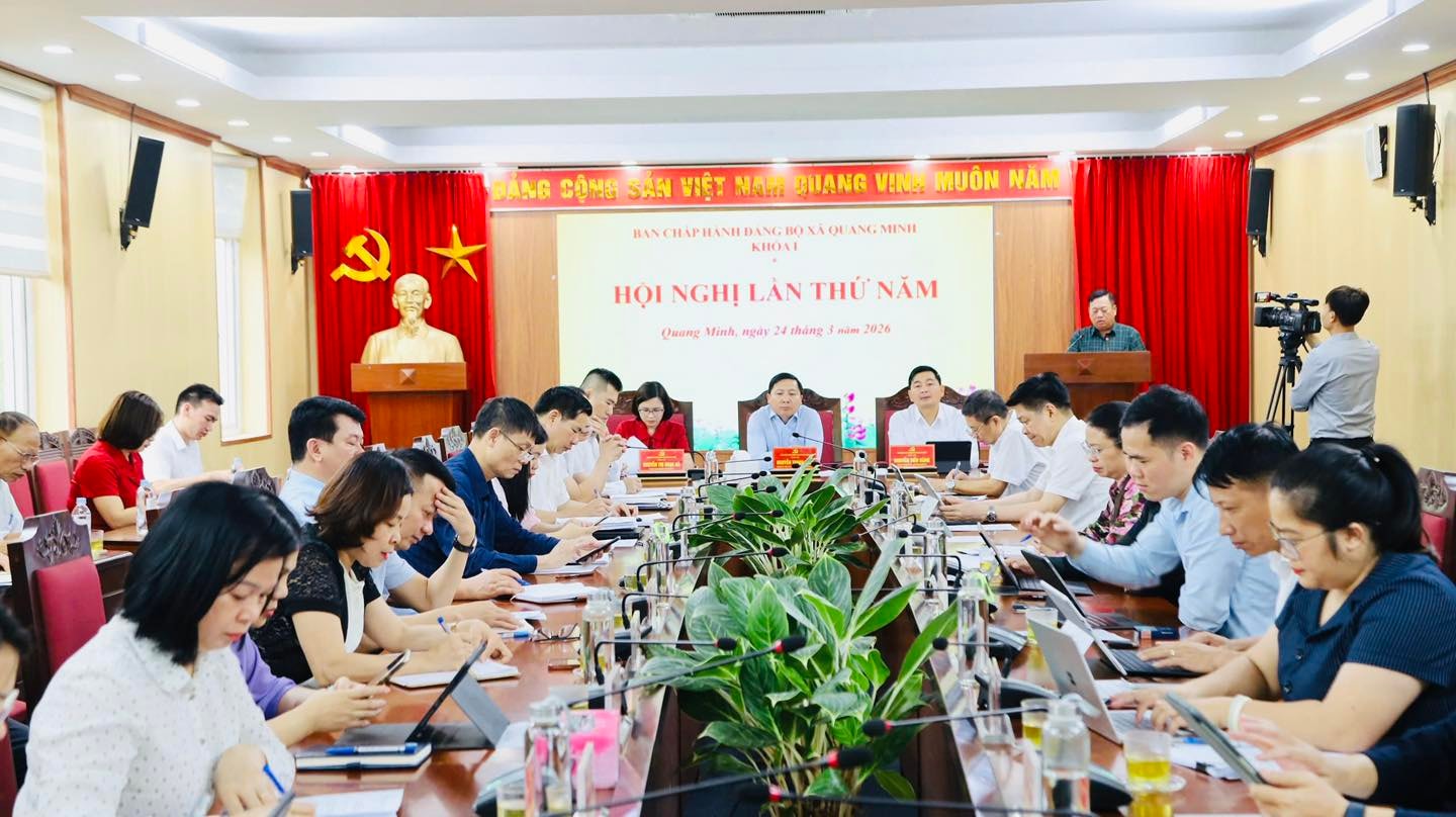Đảng bộ xã Quang Minh tổ chức Hội nghị lần thứ V Ban Chấp hành Đảng bộ xã nhằm đánh giá kết quả thực hiện nhiệm vụ quý 1 và triển khai phương hướng, nhiệm vụ 9 tháng cuối năm 2026. Ảnh: TP