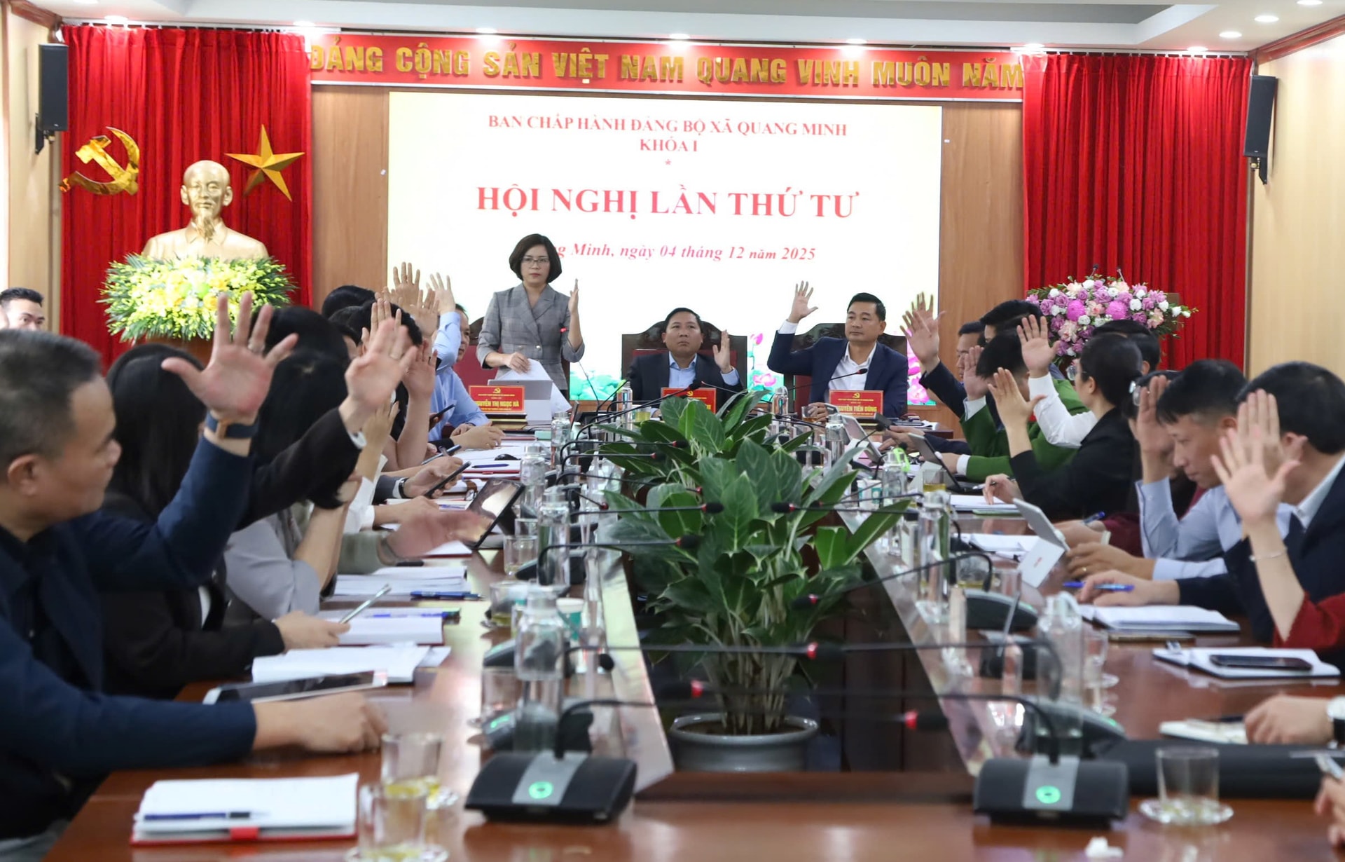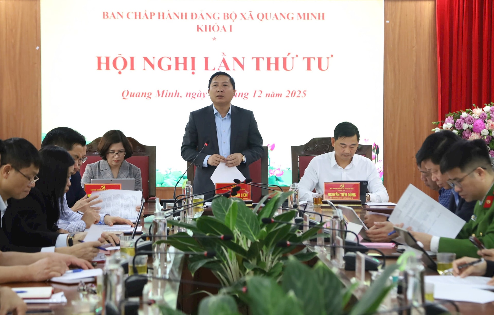 Ngày 4-12, Ban Chấp hành Đảng bộ xã Quang Minh tổ chức Hội nghị lần thứ 4 đánh giá toàn diện kết quả công tác xây dựng Đảng, xây dựng hệ thống chính trị; tình hình phát triển kinh tế - xã hội, quốc phòng - an ninh năm 2025, triển khai nhiệm vụ trọng tâm năm 2026.