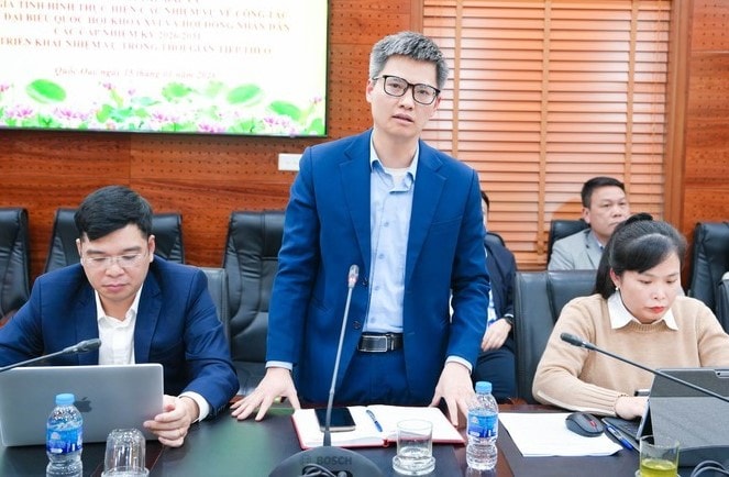 Phó Chủ tịch HĐND xã Quốc Oai Nguyễn Văn Đồng phát biểu tại hội nghị. Ảnh: Nguyễn Khải