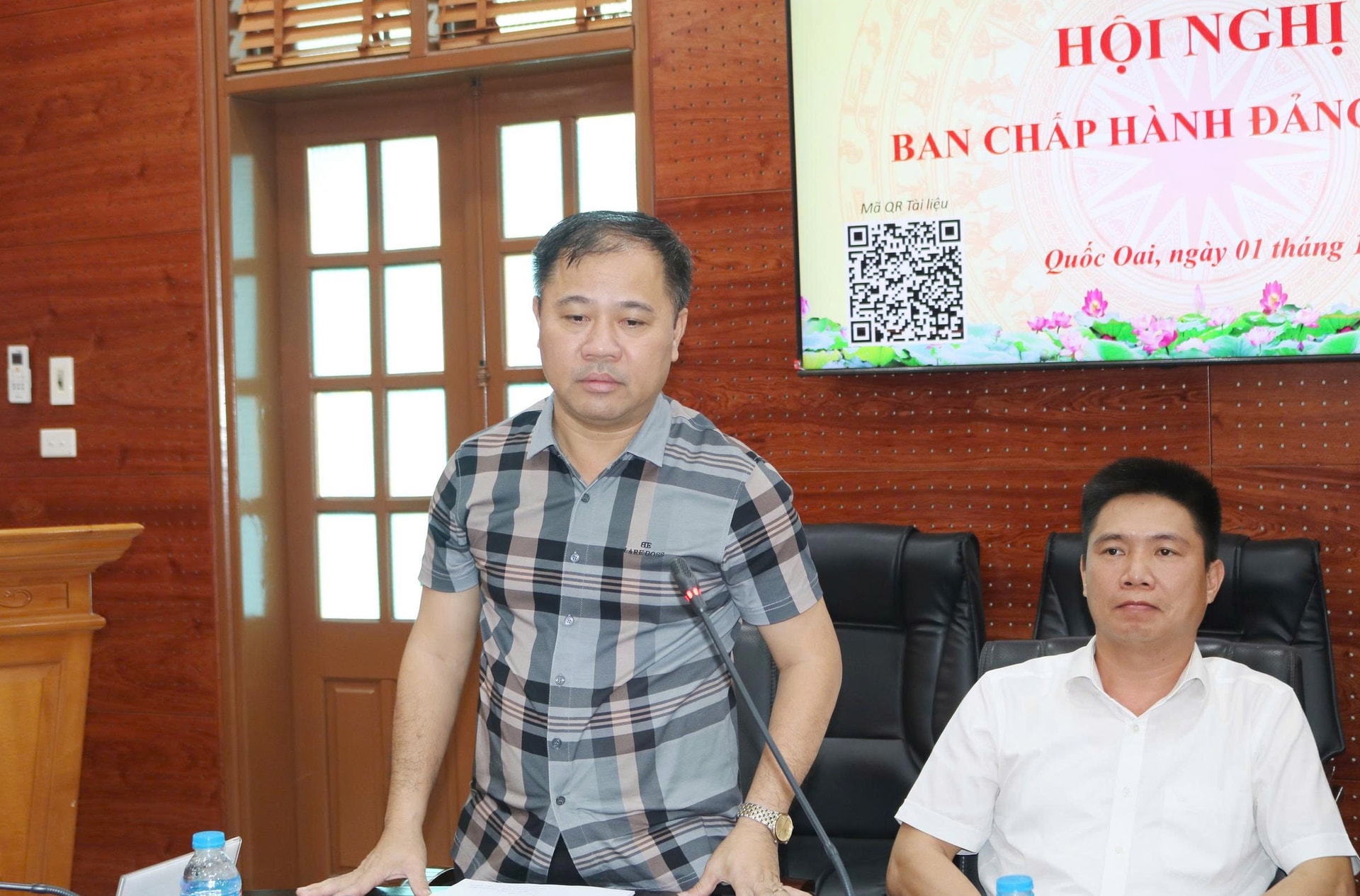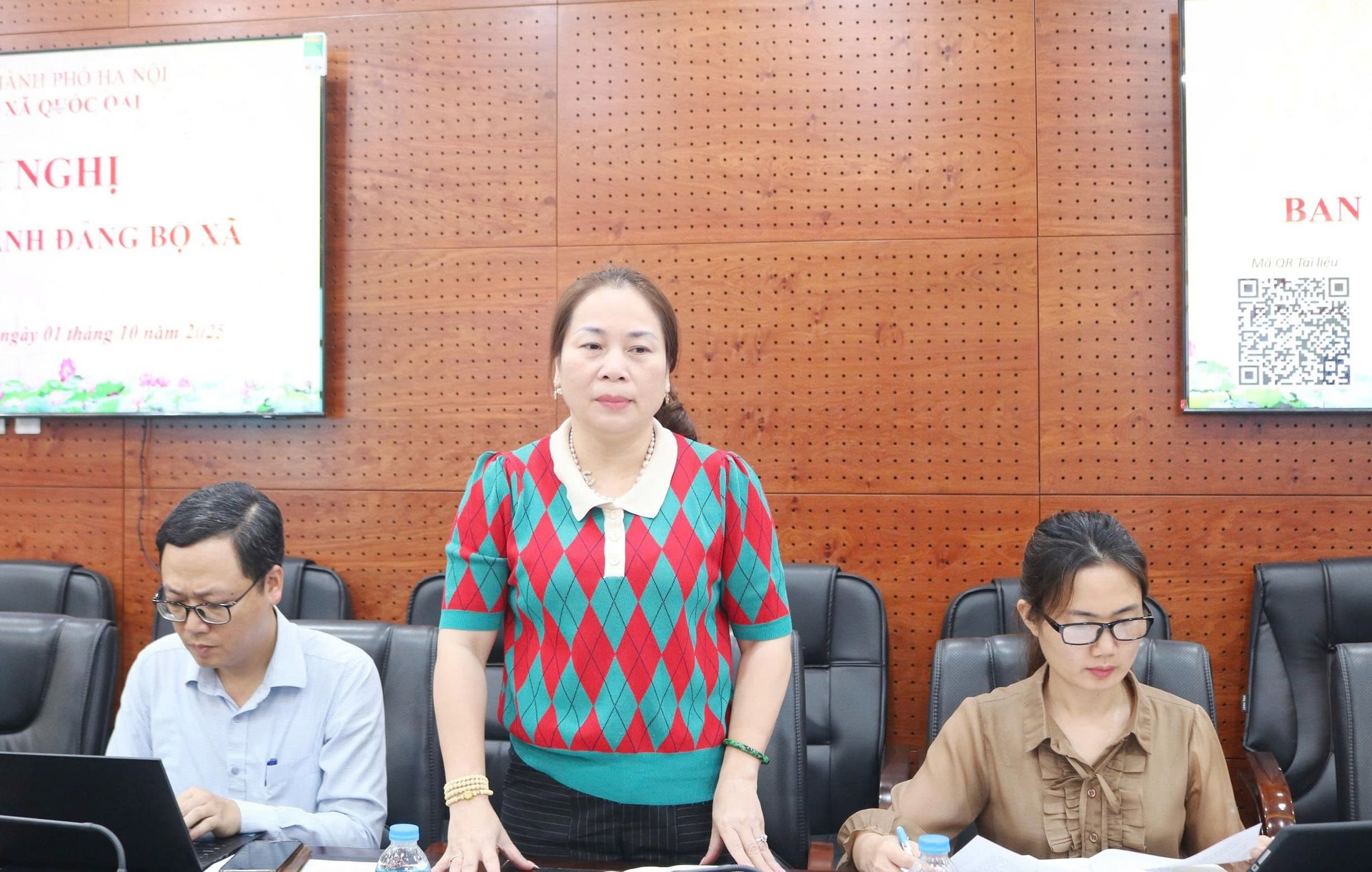 Chủ tịch UBND xã Quốc Oai báo cáo về một số kết quả đạt được trong phát triển kinh tế - xã hội. Ảnh: Bích Liên