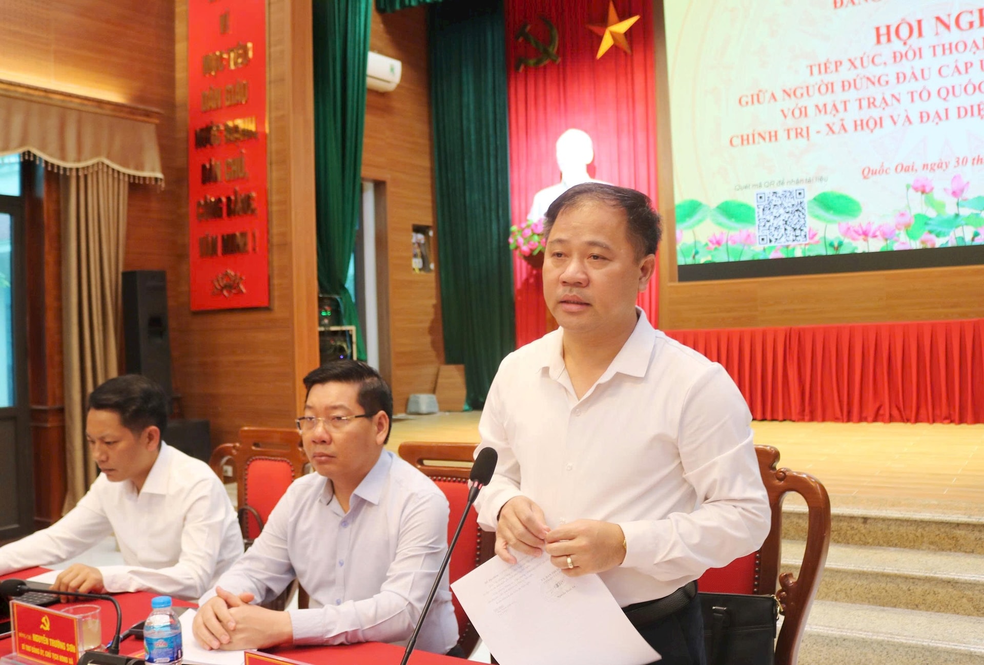 Chủ tịch UBND xã Quốc Oai Nguyễn Trung Thành giải đáp một số ý kiến của nhân dân tại hội nghị. Ảnh: Bích Liên