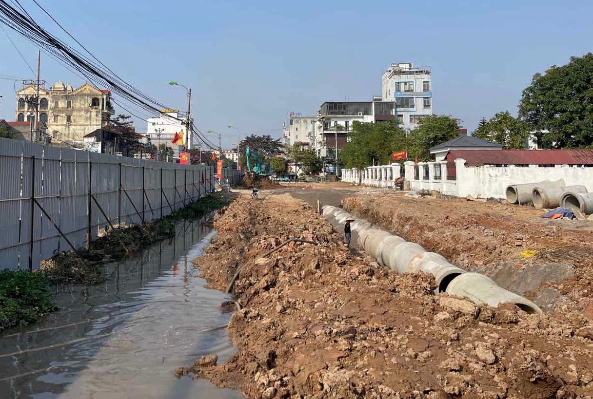 Nhà thầu đã huy động nhân lực, máy móc để đào đắp, thi công hệ thống thoát nước, nền đường. Vật liệu được tập kết gọn gàng dọc tuyến. Các biển báo, rào chắn tạm thời cũng được lắp đặt nhằm bảo đảm an toàn cho người và phương tiện lưu thông qua khu vực dự án...