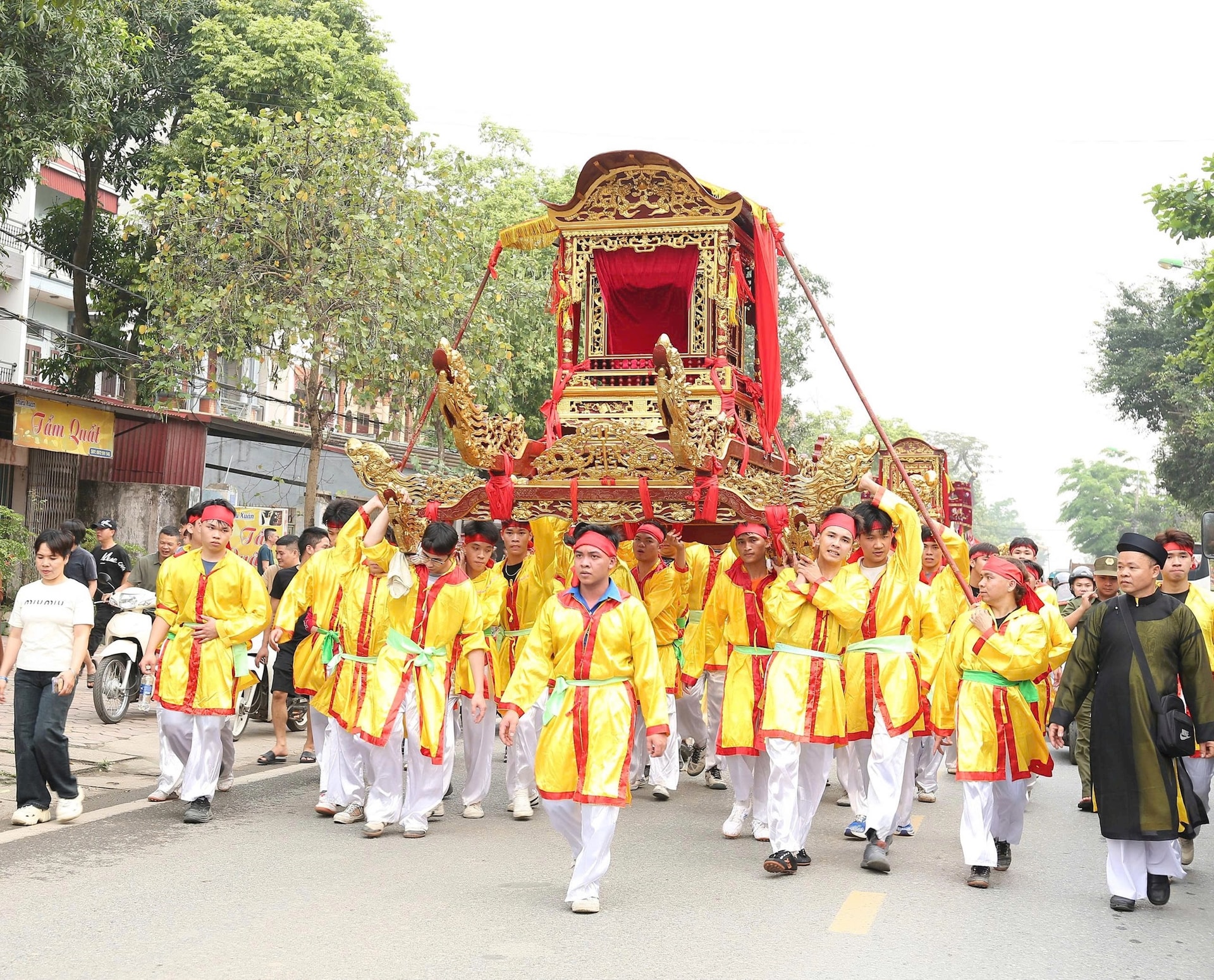 Đông đảo người dân tham gia lễ rước kiệu. Ảnh: Tuyết Minh.
