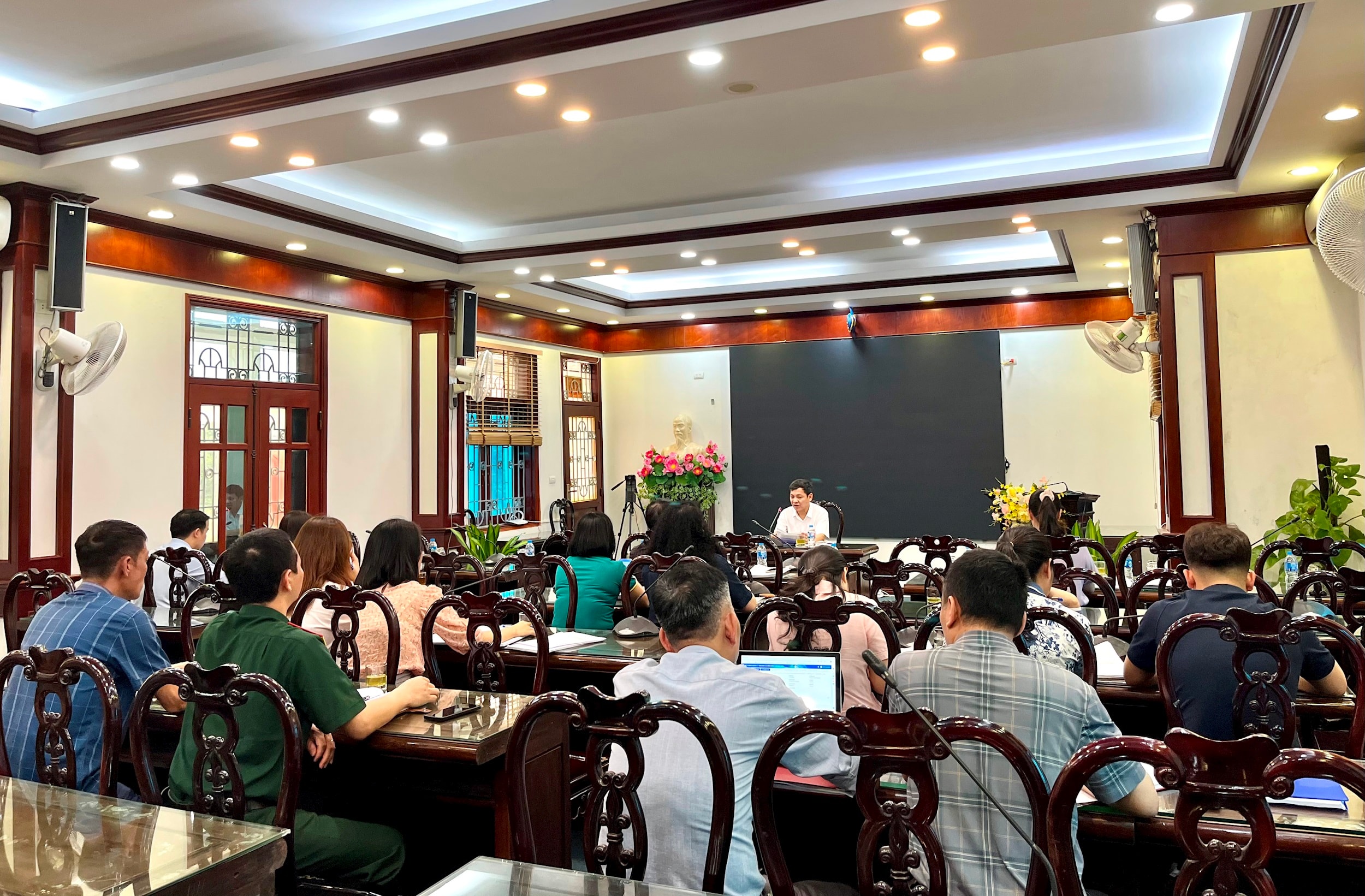 Chủ tịch UBND xã Sóc Sơn Phạm Quang Ngọc chủ trì hội nghị đối thoại. Ảnh: Tùng Nguyễn.