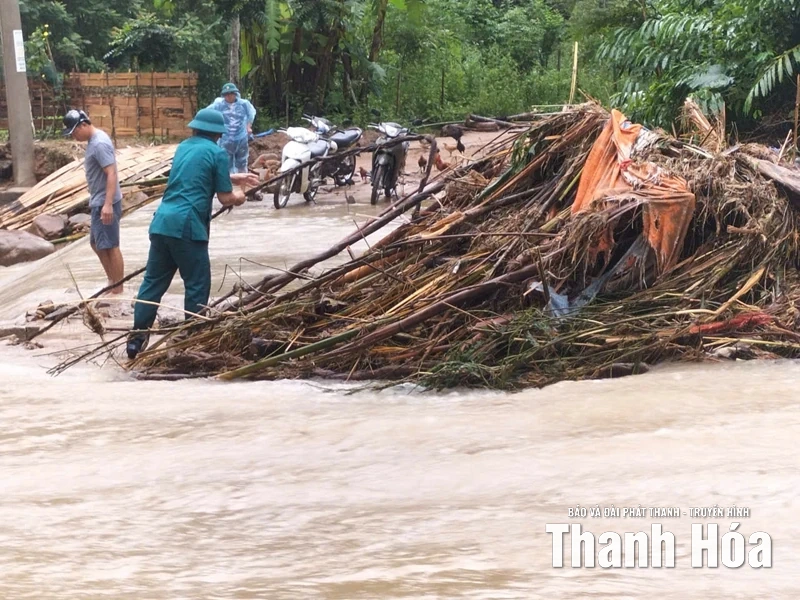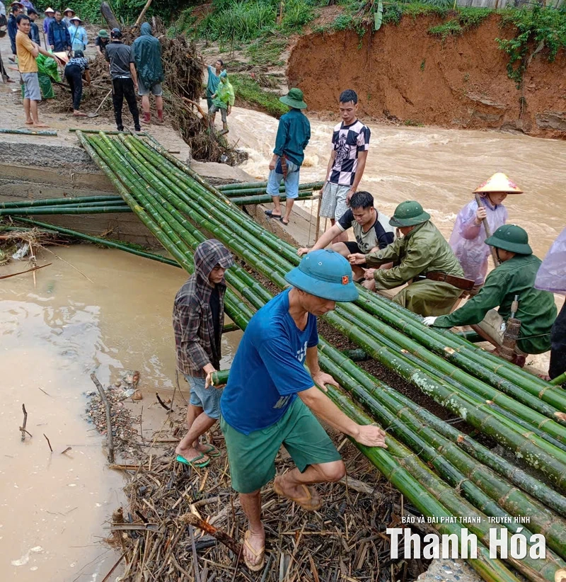 Do tràn Na Hàm bị hư hỏng, chính quyền và người dân làm bè luồng tạm thời vào bản.