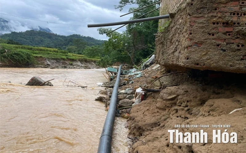 Tràn giao thông bản Na Hàm bị hư hỏng nặng do bão số 10.