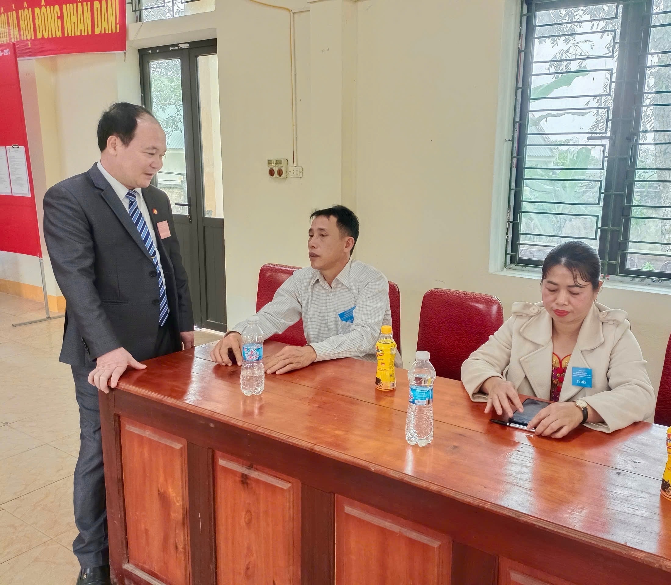 Cùng thời điểm, Phó Bí thư Thường trực Đảng ủy xã Sơn Lâm Trần Đình Tâm cũng đã đến trực tiếp kiểm tra công tác tổ chức bầu cử tại khu vực bỏ phiếu bản Thanh Dương.
