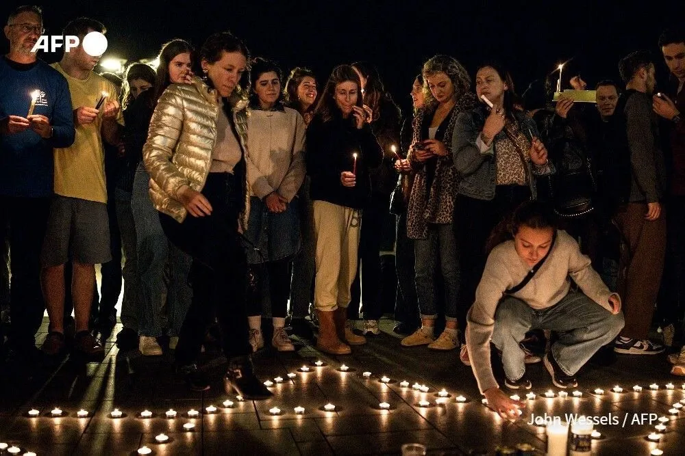 Người dân thắp nến tại Tel Aviv (Israel) để bày tỏ đoàn kết với các nạn nhân trong cộng đồng Do Thái sau vụ xả súng ở bãi biển Bondi ngày 14-12. Ảnh: AFP