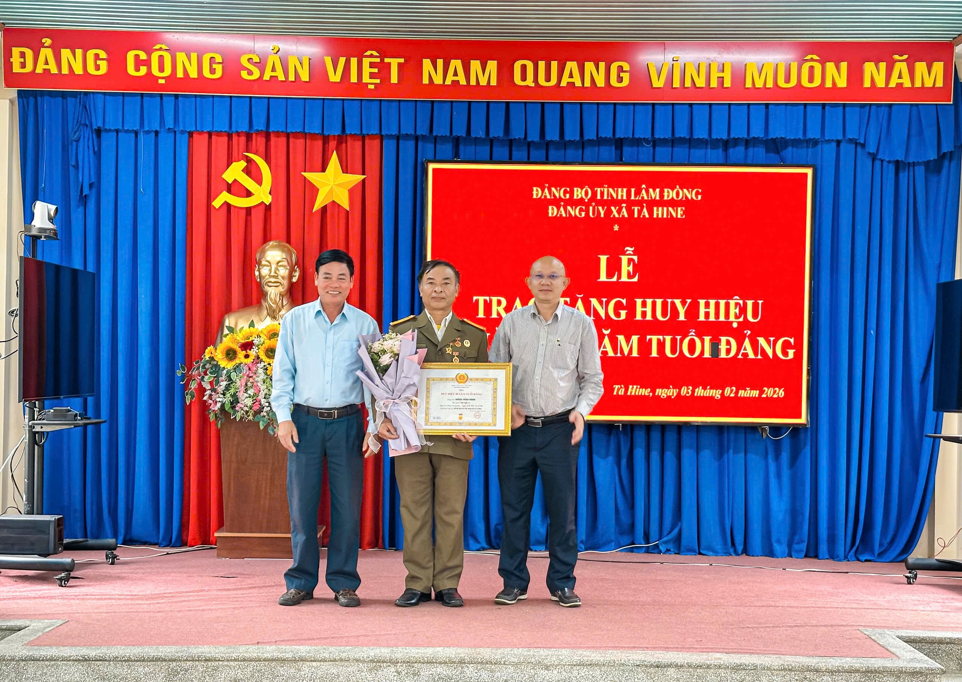 Dự và phát biểu tại buổi lễ, đồng chí Hà Phước Bình, Bí thư Đảng ủy xã đã chúc mừng các đảng viên vinh dự được trao tặng Huy hiệu Đảng dịp này.
