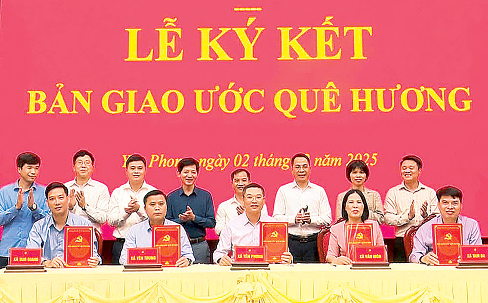 Lãnh đạo Đảng ủy, HĐND, UBND, Ủy ban MTTQ xã Tam Giang cùng các xã lân cận ký giao ước quê hương.