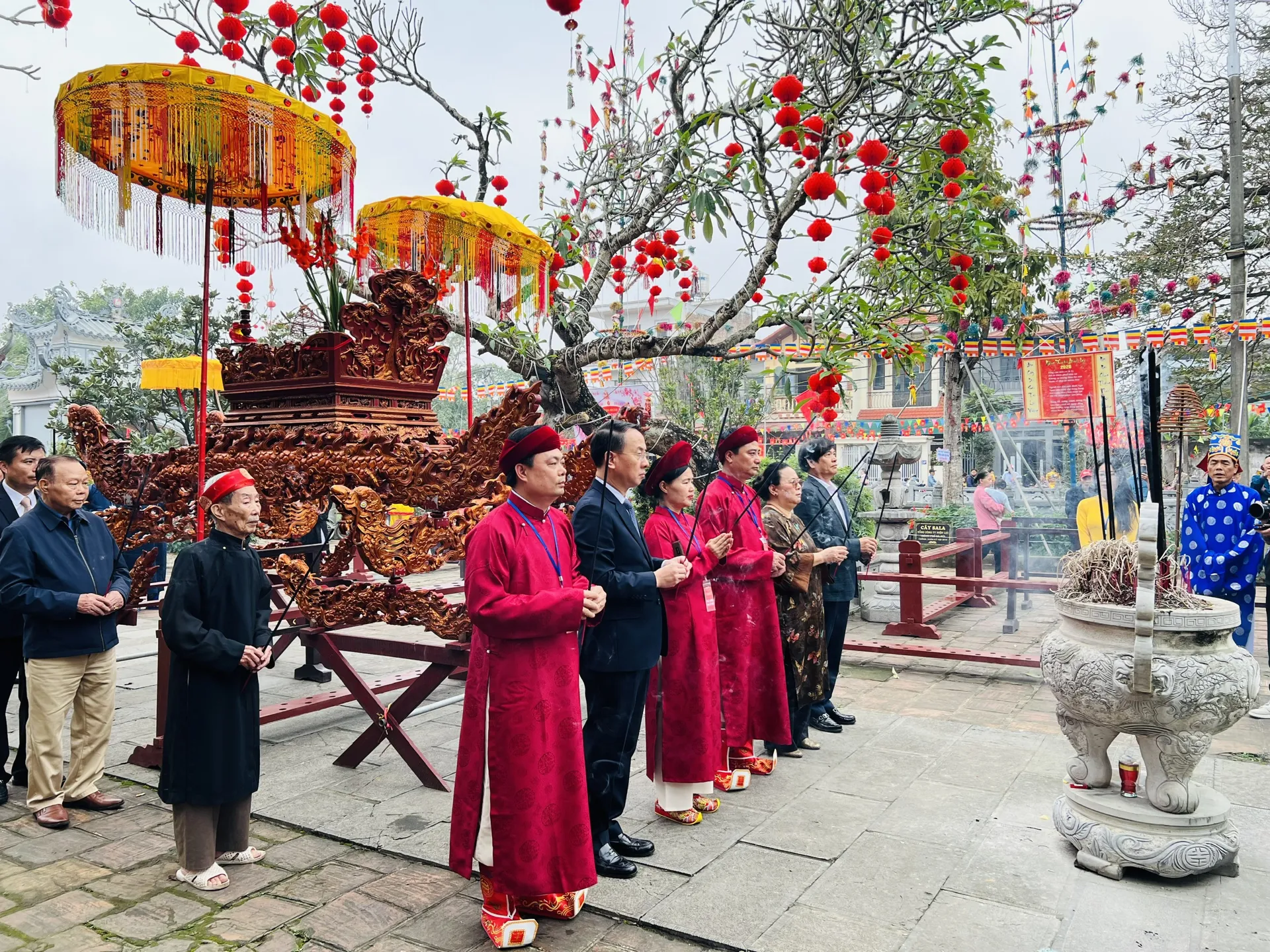 Dự lễ có các đồng chí: nguyên Chủ tịch HĐND thành phố Hà Nội Nguyễn Thị Bích Ngọc; Ủy viên Ban Thường vụ, Trưởng Ban Nội chính Thành ủy Hà Nội Trần Đình Cảnh. Cùng dự còn có đại diện lãnh đạo các sở, ngành thành phố; xã, phường bạn và đông đảo Nhân dân, du khách thập phương.