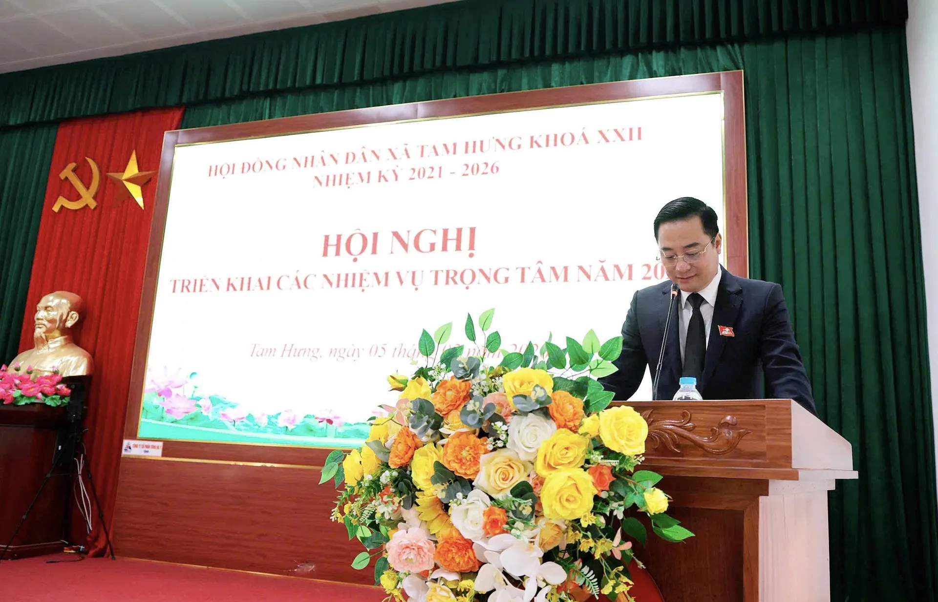 Phát biểu tại hội nghị, Bí thư Đảng ủy, Chủ tịch HĐND xã Tam Hưng Bùi Văn Sáng nhấn mạnh: Năm 2026 là năm tổ chức cuộc bầu cử đại biểu Quốc hội khóa XVI và đại biểu HĐND các cấp nhiệm kỳ 2026–2031 – một sự kiện chính trị đặc biệt quan trọng của đất nước, có ý nghĩa sâu sắc đối với việc phát huy quyền làm chủ của Nhân dân và xây dựng chính quyền các cấp vững mạnh.