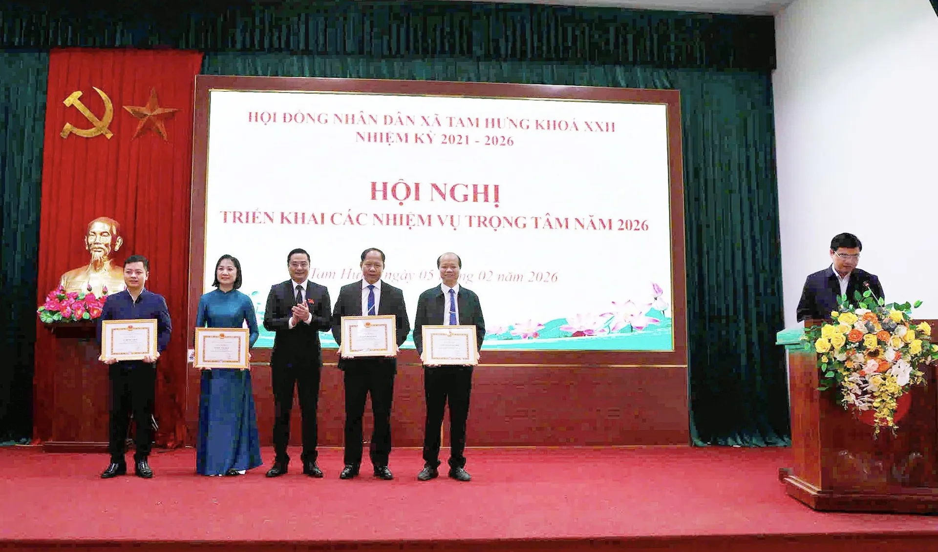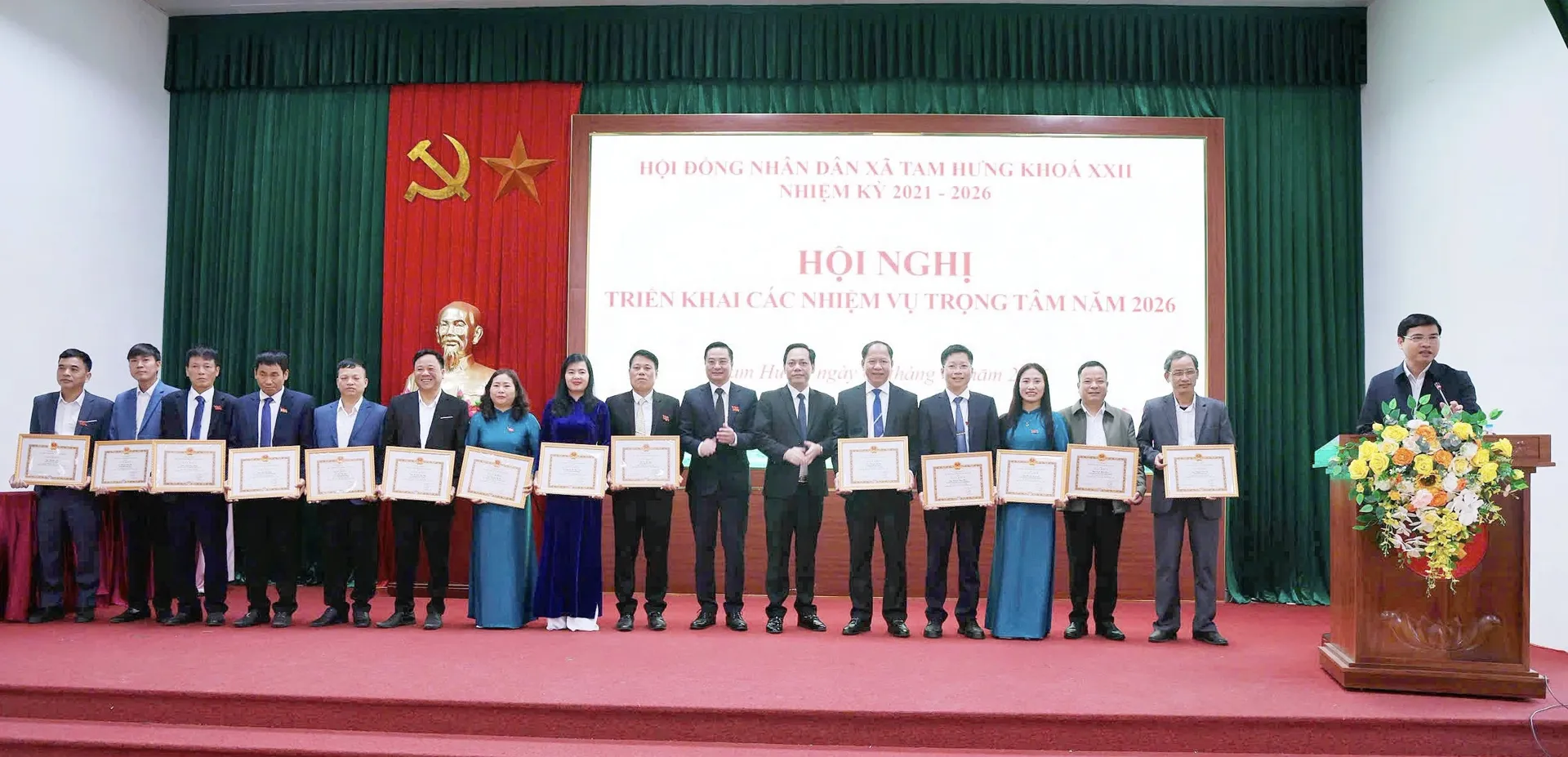 Nhân dịp này, Chủ tịch UBND xã Tam Hưng đã tặng Giấy khen cho 4 tập thể, 29 cá nhân có thành tích trong công tác HĐND xã Tam Hưng nhiệm kỳ 2021-2026.