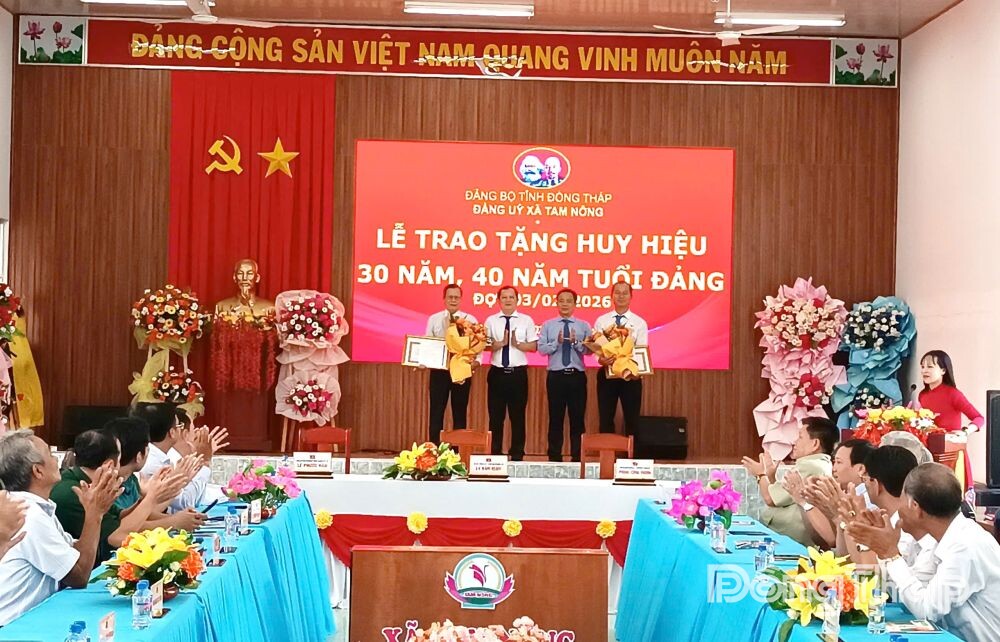 Tại buổi họp mặt, Đảng bộ xã Tam Nông có 1 đảng viên nhận Huy hiệu 40 năm tuổi Đảng, 1 đảng viên nhận Huy hiệu 30 năm tuổi Đảng đợt 3-2-2026.
