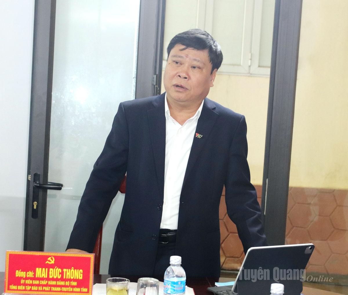 Đồng chí Mai Đức Thông, Tổng Biên tập Báo và phát thanh, truyền hình Tuyên Quang, Chủ tịch Hội Nhà báo tỉnh phát biểu chỉ đạo tại hội nghị.
