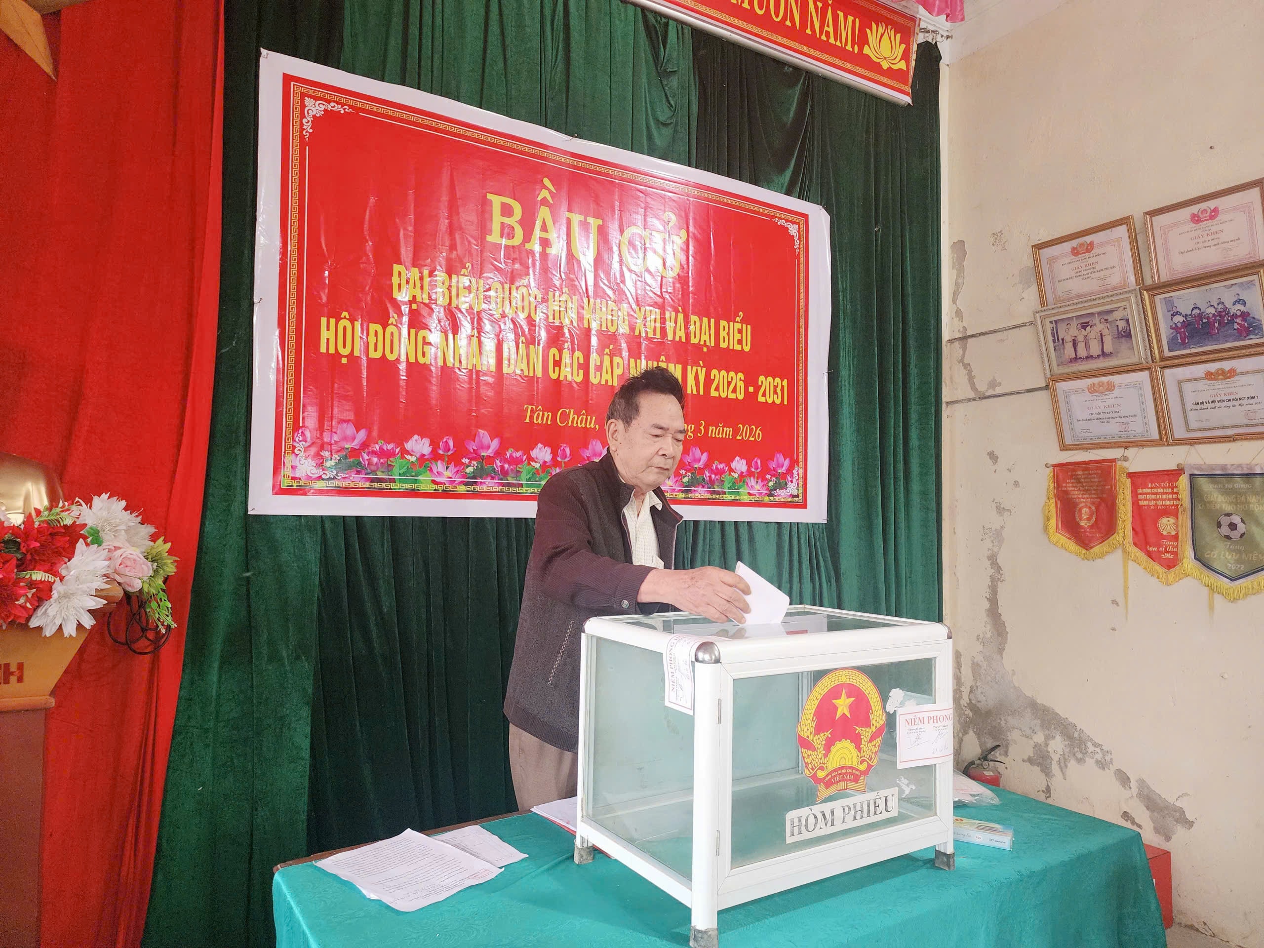 Có mặt tại một số khu vực bỏ phiếu trên địa bàn xã Tân Châu, chúng tôi cảm nhận rõ không khí rộn ràng của ngày hội bầu cử. Các tuyến đường dẫn vào khu vực bỏ phiếu được trang hoàng rực rỡ với cờ Tổ quốc, băng rôn, khẩu hiệu tuyên truyền. Tại mỗi điểm bầu cử, danh sách cử tri, tiểu sử tóm tắt của người ứng cử được niêm yết công khai, tạo điều kiện để cử tri tìm hiểu và lựa chọn những đại biểu tiêu biểu, xứng đáng đại diện cho ý chí và nguyện vọng của Nhân dân.