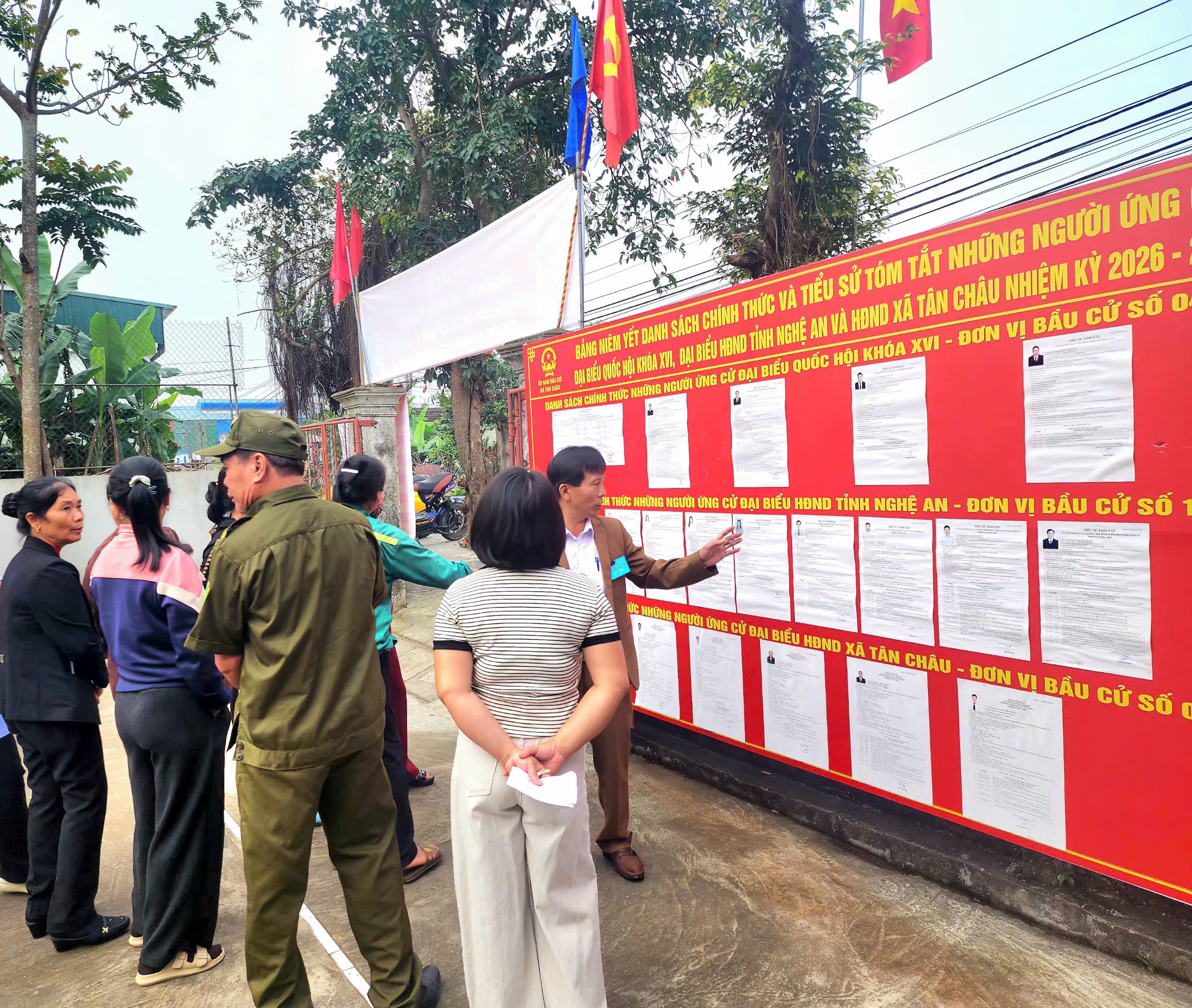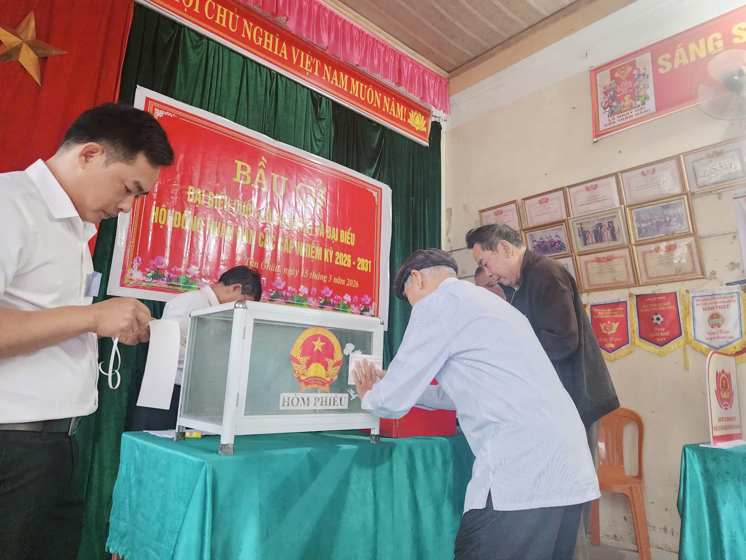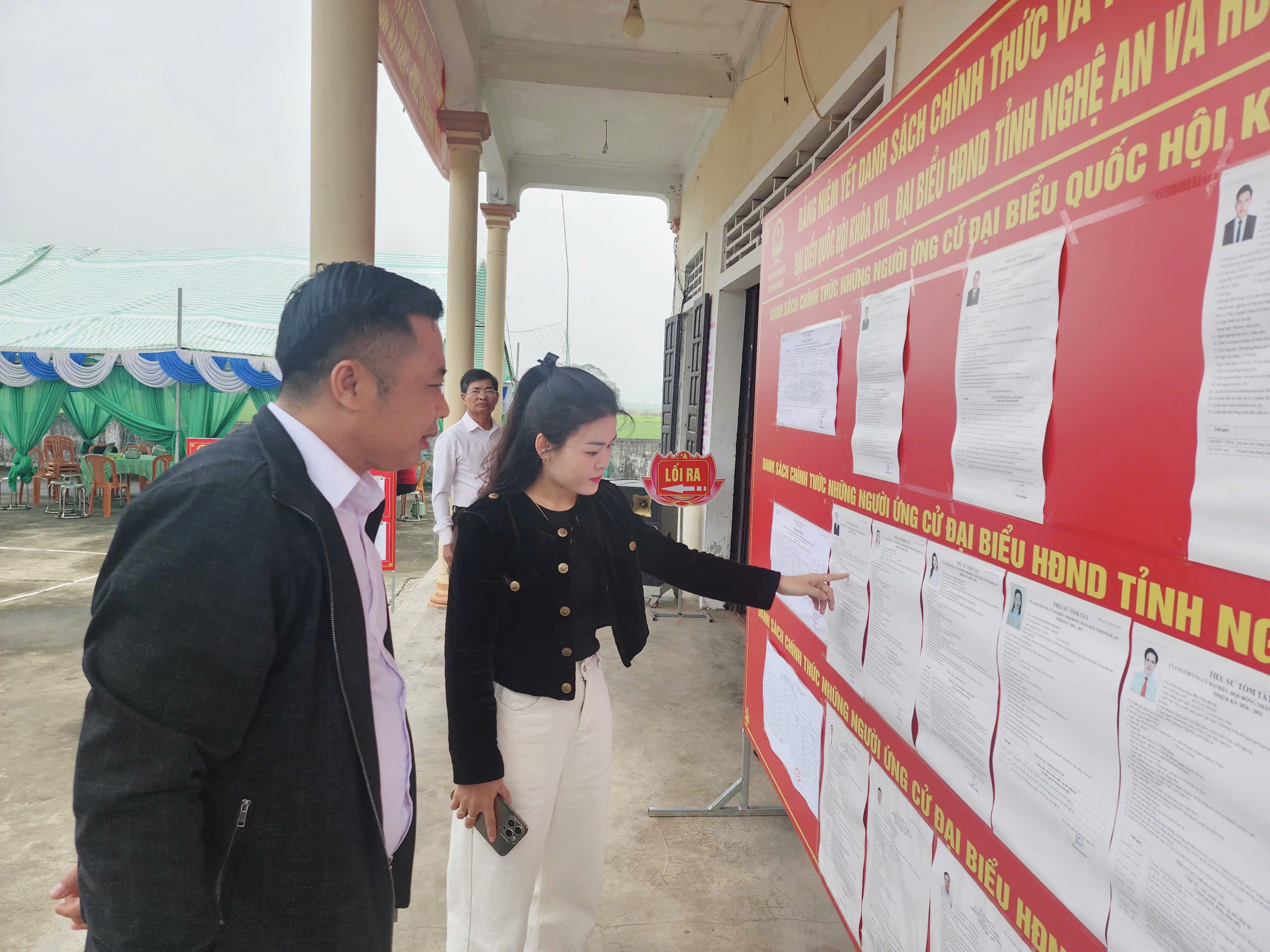 Tại đơn vị bầu cử số 1, xóm Sơn Đầu, nhiều cử tri cũng đã có mặt từ sớm để nghiên cứu thông tin về các ứng cử viên trước khi thực hiện quyền bầu cử. Không khí tại đây diễn ra nghiêm túc nhưng vẫn ấm áp, phấn khởi, thể hiện tinh thần trách nhiệm của người dân đối với sự kiện chính trị quan trọng của đất nước.