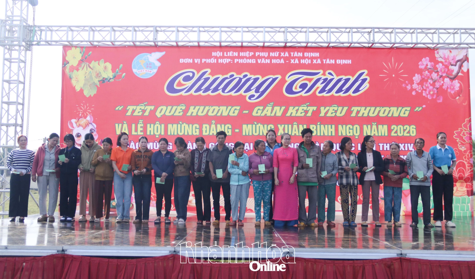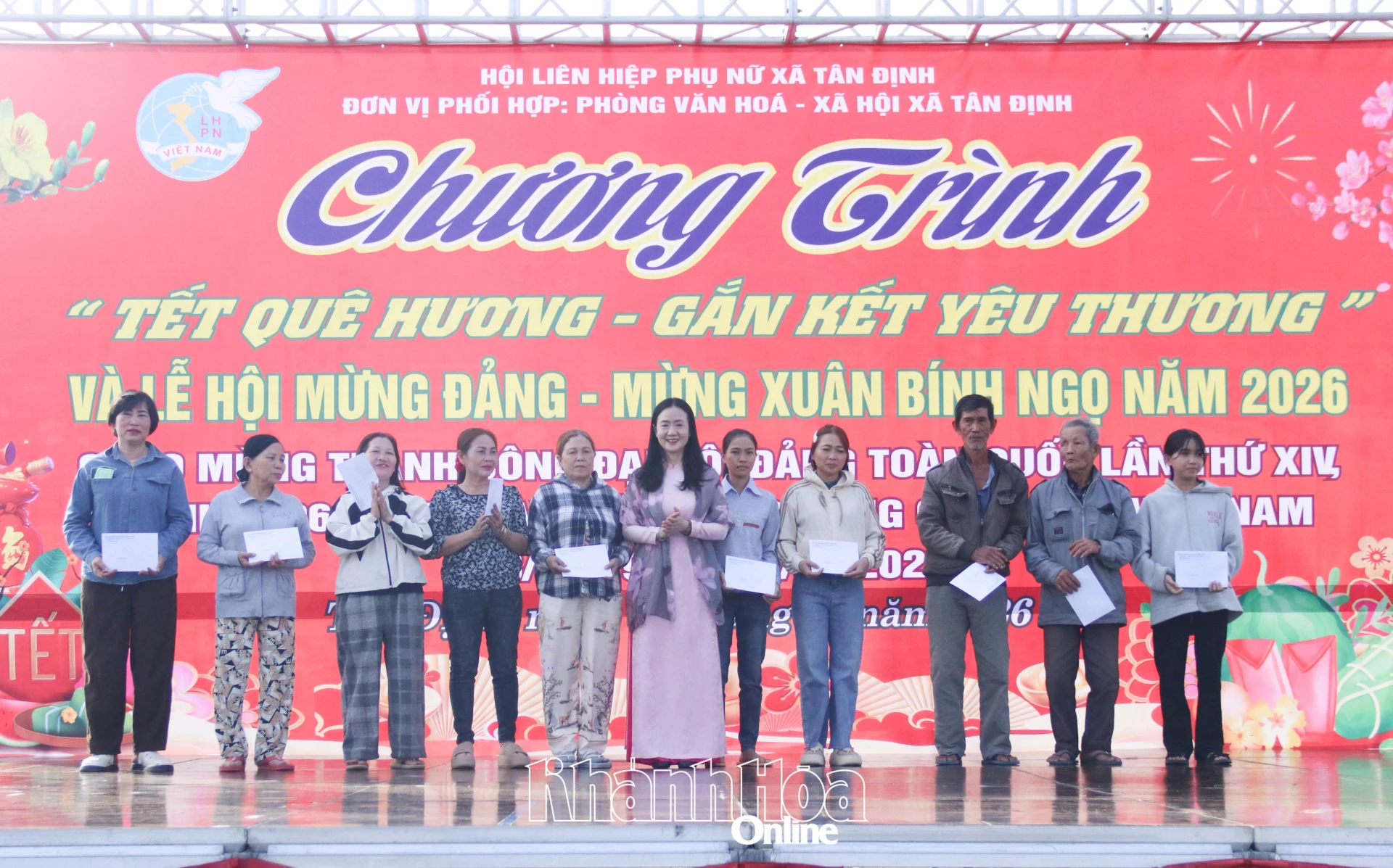 Ngày 31-1, Hội Liên hiệp Phụ nữ xã Tân Định phối hợp với Phòng Văn hóa - Xã hội xã tổ chức chương trình “Tết quê hương - gắn kết yêu thương” và Lễ hội mừng Đảng - mừng xuân Bính Ngọ năm 2026. Hoạt động nhằm chào mừng thành công Đại hội đại biểu toàn quốc lần thứ XIV của Đảng; kỷ niệm 96 năm Ngày thành lập Đảng Cộng sản Việt Nam (3-2-1930 - 3-2-2026) và mừng xuân Bính Ngọ năm 2026. Đồng chí Nguyễn Quỳnh Nga - Phó Chủ tịch Ủy ban MTTQ Việt Nam tỉnh, Chủ tịch Hội Liên hiệp Phụ nữ tỉnh tham dự chương trình.