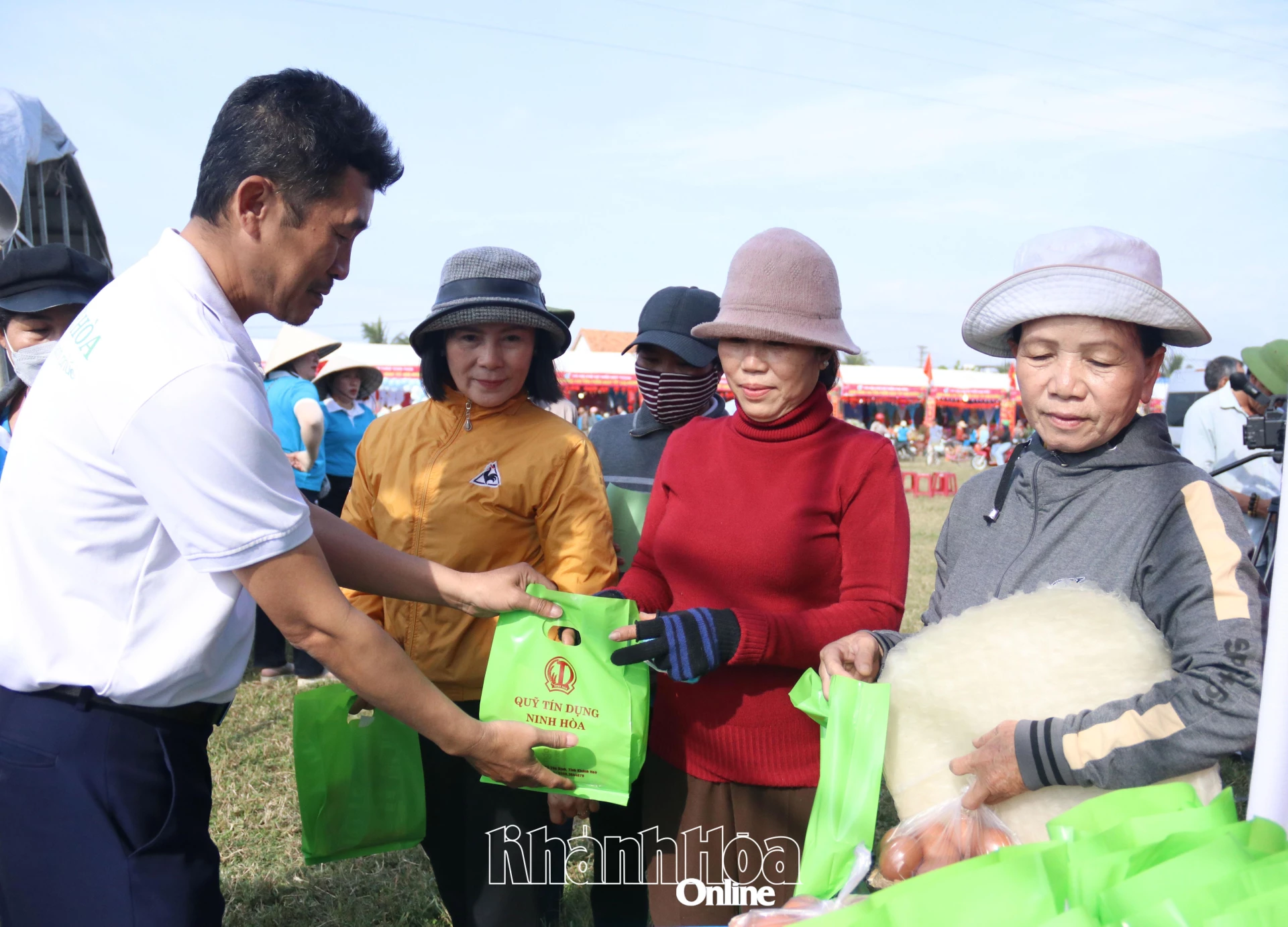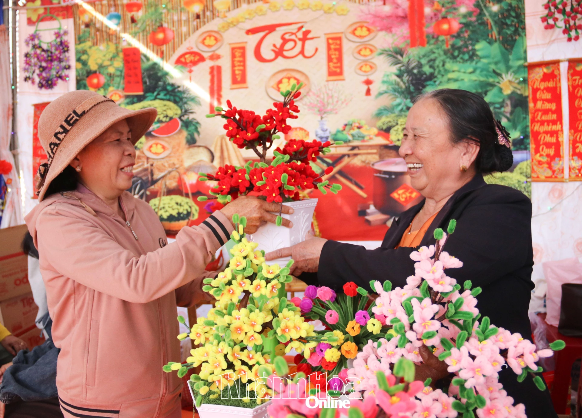 Dịp này, Hội Liên hiệp Phụ nữ tỉnh tặng 10 suất quà (500.000 đồng/suất) cho các gia đình phụ nữ có hoàn cảnh khó khăn. Ban tổ chức tặng 30 suất quà Tết (500.000 đồng/suất) cho hộ nghèo, cận nghèo tại địa phương; tặng 3 phương tiện sinh kế (3 triệu đồng/suất) hỗ trợ phụ nữ nghèo, khó khăn. Đồng thời, trao 2 giải nhất, 2 giải nhì, 3 giải ba cho các đội trong phần thi trang trí gian hàng Tết, biểu diễn văn nghệ và 1 giải xuất sắc toàn đoàn.
