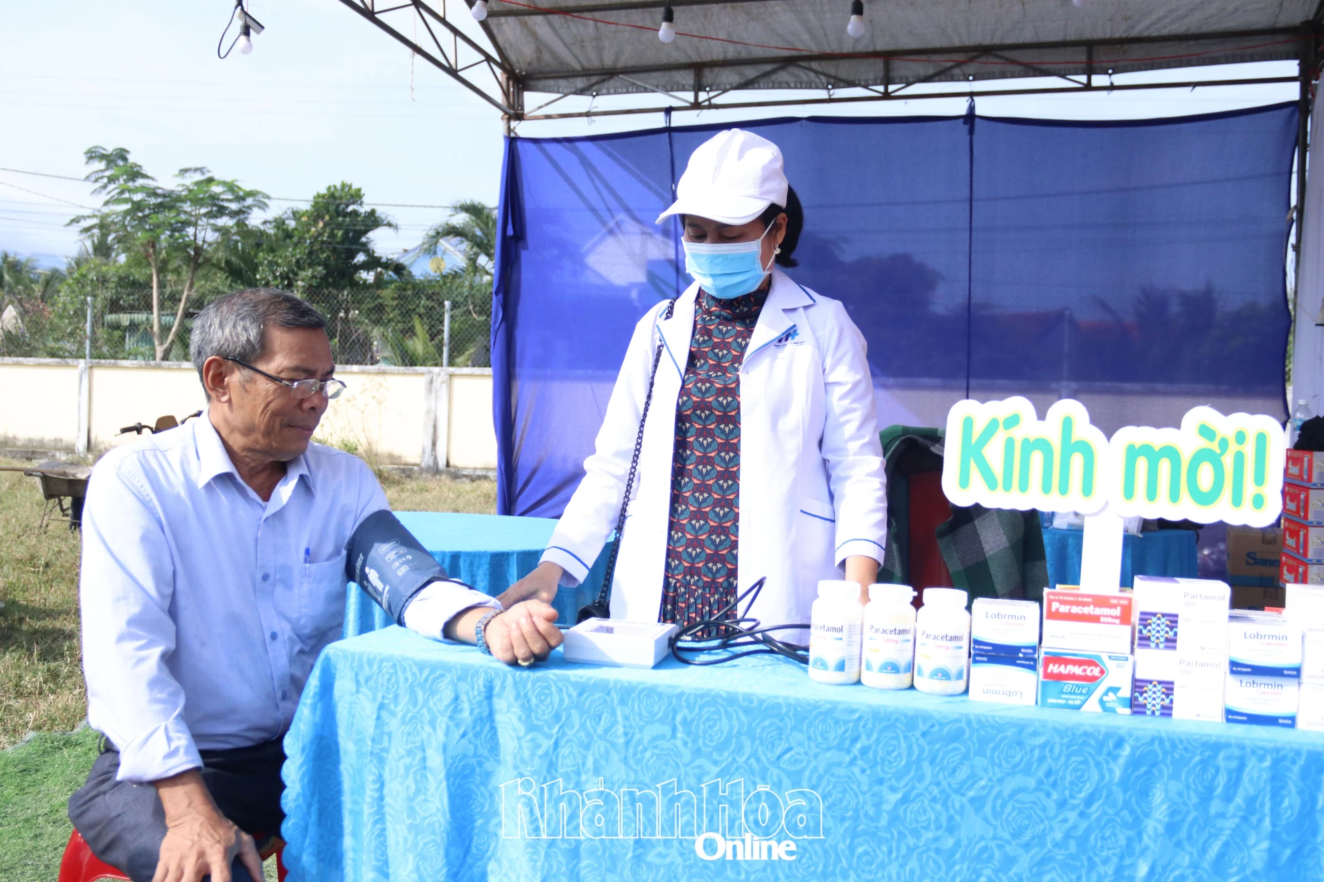 Gian hàng khám, chữa bệnh miễn phí do Hội Liên hiệp Phụ nữ xã Tân Định thực hiện.