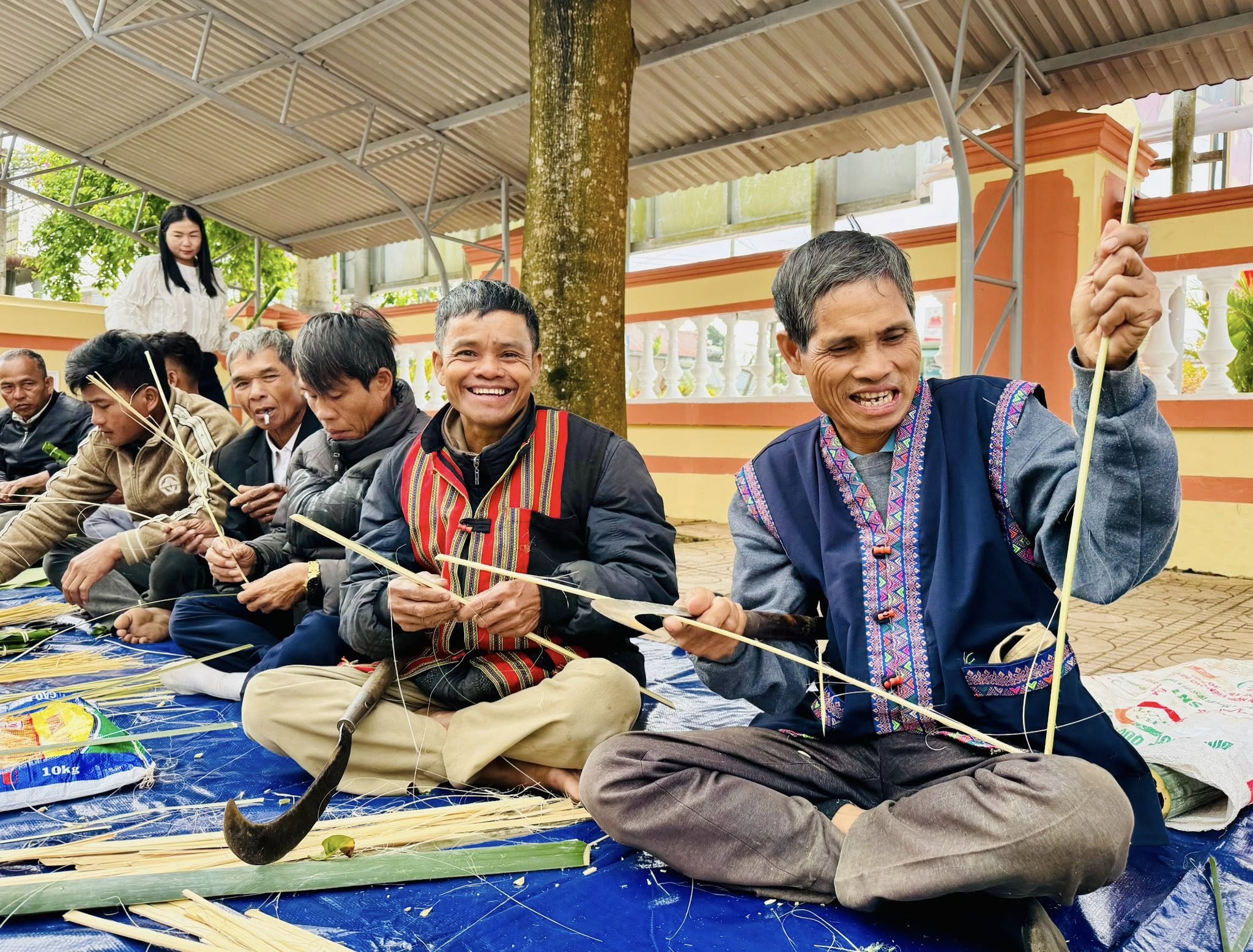 Người dân xã Tân Lập chuẩn bị lạt gói bánh trong chương trình “Gói bánh chưng xanh-Tết cho người nghèo”- Ảnh: N.T