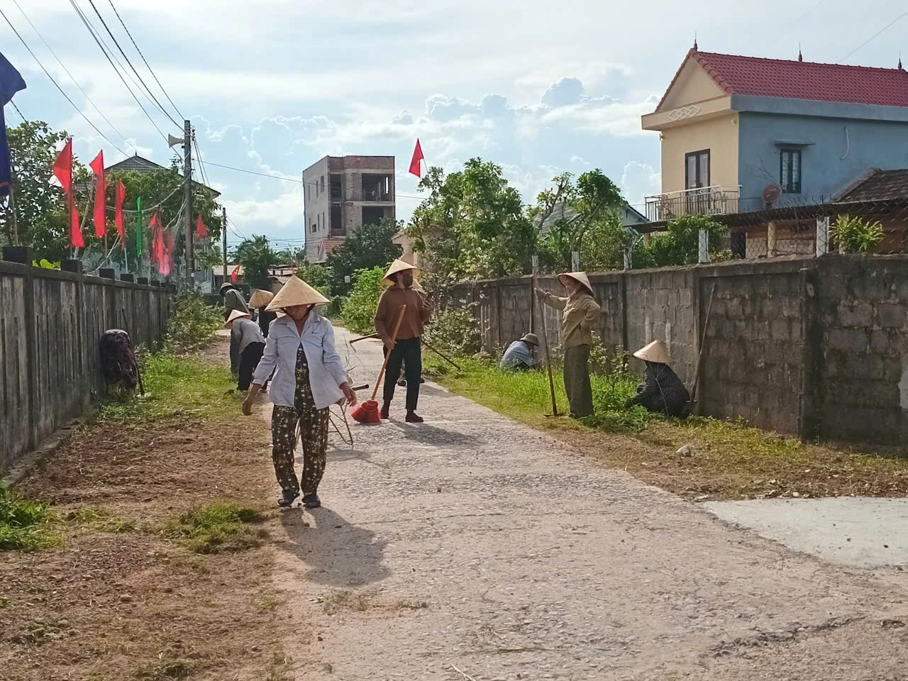Người dân xã Tân Mỹ chung tay vệ sinh đường làng ngõ xóm sạch đẹp, văn minh. - Ảnh: Phan Khiêm