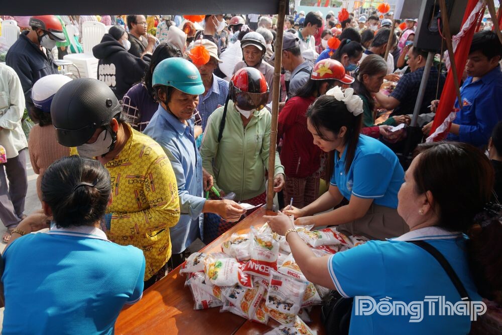 Phiên chợ được tổ chức với các gian hàng “0 đồng”, cung ứng đa dạng mặt hàng thiết yếu phục vụ nhu cầu sinh hoạt dịp tết như: Gạo, mì gói, nhu yếu phẩm, bánh mứt, rau củ, nông sản... Mỗi hộ dân được phát một phiếu mua hàng trị giá 500.000 đồng để chủ động lựa chọn những mặt hàng phù hợp với nhu cầu gia đình.