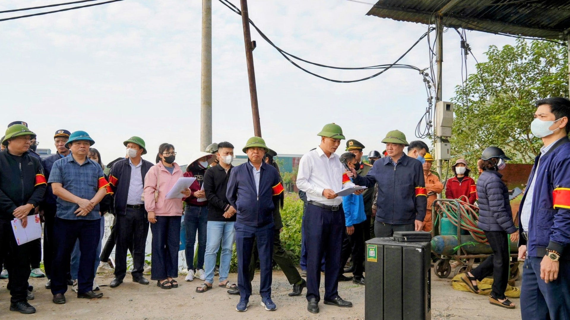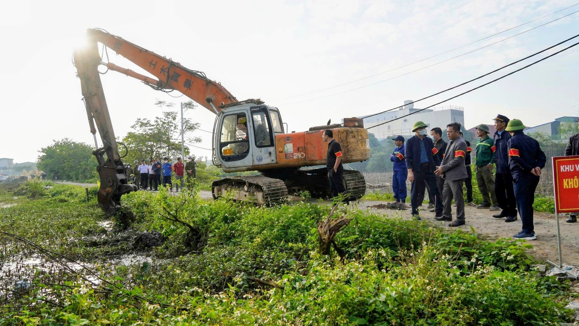 Quá trình cưỡng chế thu hồi đất đối với các trường hợp không chấp hành Quyết định thu hồi đất để triển khai dự án Cụm công nghiệp làng nghề Hữu Bằng diễn ra an toàn, đúng kế hoạch.