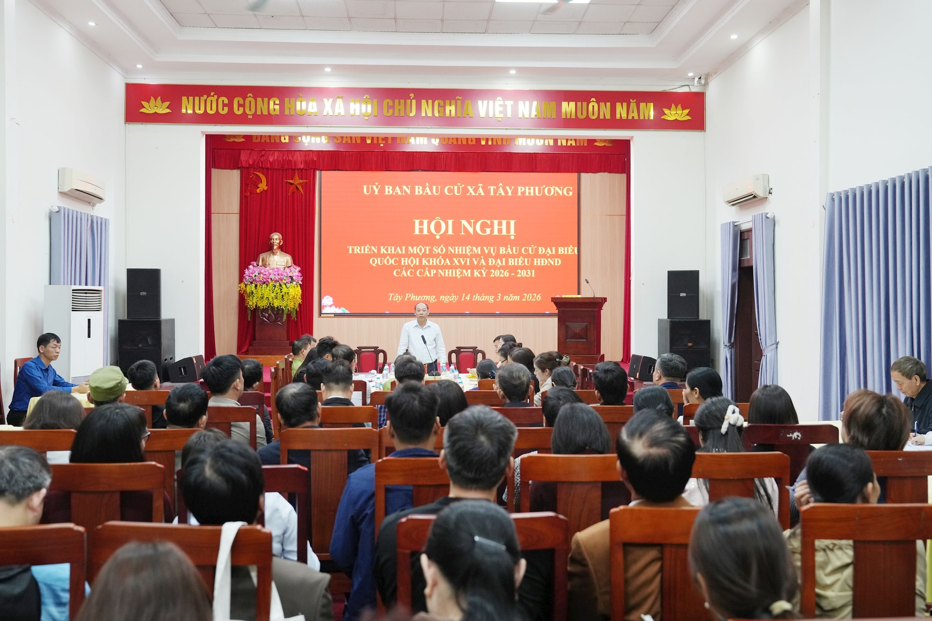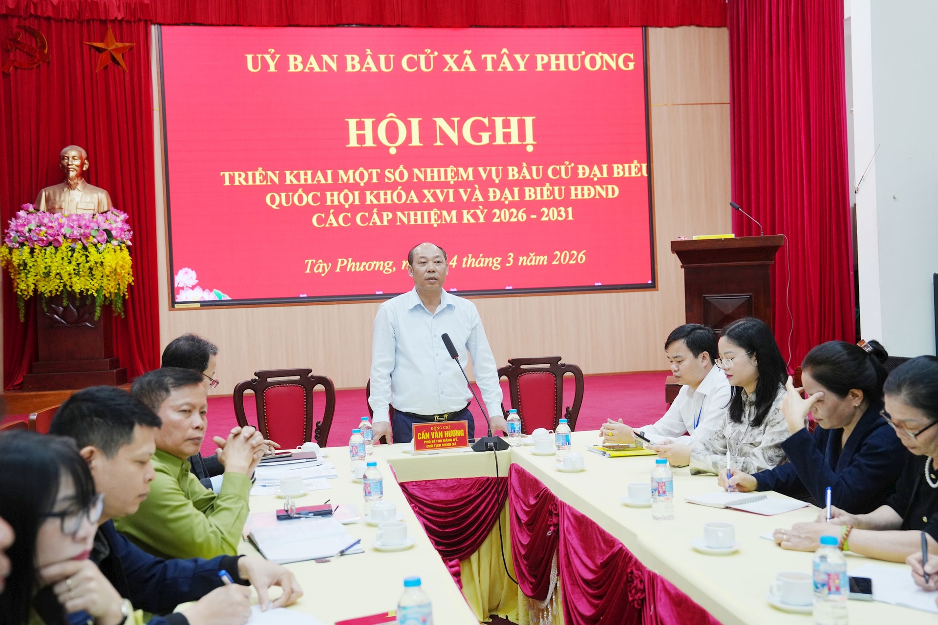 Tại hội nghị, ông Đặng Văn Võ, Trưởng phòng Văn hóa xã Tây Phương đã trao đổi và nhấn mạnh một số công việc quan trọng của tổ bầu cử tại các thôn. Trong đó, nhấn mạnh về vai trò, trách nhiệm của tổ trưởng tổ bầu cử và thư ký tại tổ bầu cử của 35 tổ bầu cử trên địa bàn.