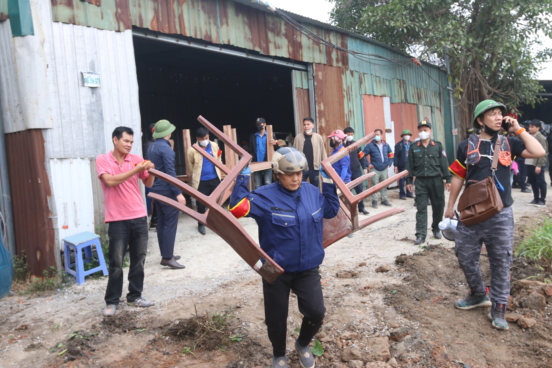 Lực lượng chức năng tổ chức cưỡng chế Cụm công nghiệp làng nghề Hữu Bằng đối với 150 hộ dân vào cuối năm 2025. Ảnh: Công Phương