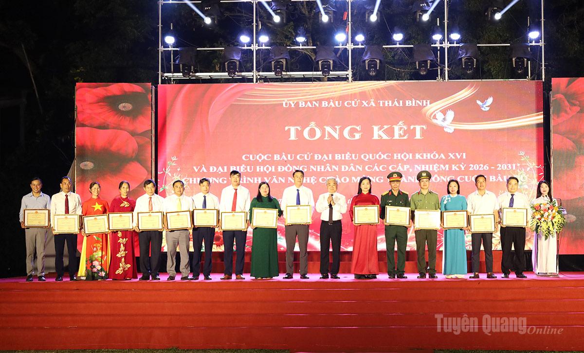 Lãnh đạo xã Thái Bình trao giấy khen cho các tập thể có thành tích xuất sắc trong công tác bầu cử.