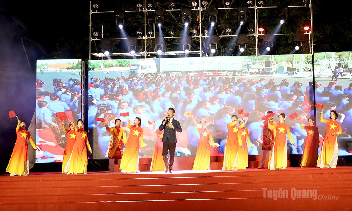 Tiết mục văn nghệ ca ngợi Đảng, Bác Hồ, quê hương, đất nước.