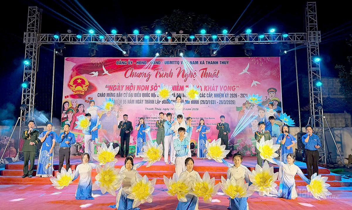 Chương trình nghệ thuật với chủ đề “Ngày hội non sông – Niềm tin và khát vọng” được thể hiện bởi cán bộ, chiến sĩ Đoàn Kinh tế - Quốc phòng 313, Đồn Biên phòng Cửa khẩu Quốc tế Thanh Thủy, các đoàn viên, thanh niên xã và các đơn vị trường học trên địa bàn.