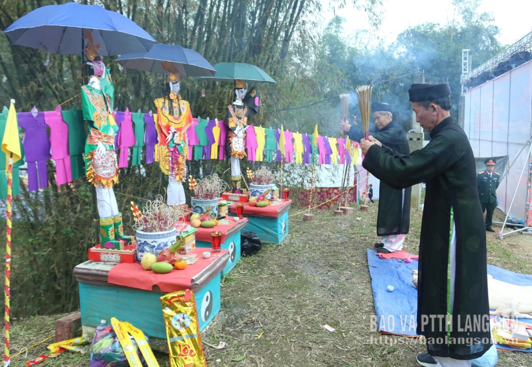 Đúng 8 giờ, tiếng trống khai hội vang lên, mở màn cho phần lễ. Lãnh đạo UBND xã chủ trì lễ tế các vị thần; các đại biểu và Nhân dân dâng hương tưởng nhớ Thần Nông, Thần Thổ địa và các vị thần linh đã che chở, phù hộ cho cuộc sống và sản xuất của Nhân dân. Các tiết mục văn nghệ, múa sư tử, hát dân ca truyền thống do các câu lạc bộ và đồng bào các dân tộc trên địa bàn biểu diễn tạo không khí vui tươi, đậm đà bản sắc.