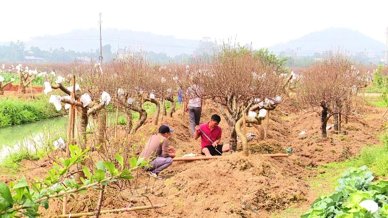 Năm nay, các hộ trồng đào trên địa bàn xã Thọ Phú rất vất vả chăm sóc cây do những biến động về thời tiết, cộng với tháng nhuận. Tuy nhiên, bằng kinh nghiệm dày dặn kết hợp với áp dụng khoa học kỹ thuật đúng thời điểm nên phần lớn diện tích đào ở đây vẫn phát triển tốt, nhiều nụ, nở hoa đúng dịp Tết Nguyên đán 2026.