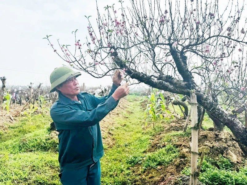 Đến thăm vườn đào của ông Lê Văn Ban - một trong nhưng hộ gia đình trồng đào lâu năm của địa phương, những gốc đào thế, đào huyền đang chúm chím nụ. Ông Ban cho biết: “Năm nay gia đình tôi có hơn 300 gốc đào, nở đúng dịp tết. Hiện nay khách đã đến đặt mua tại vườn khoảng 70%. Được xã thông báo tổ chức hội chợ hoa đào, tôi rất hào hứng, đang chọn những cây đẹp nhất mang đến trưng bày, quảng bá đến người dân".