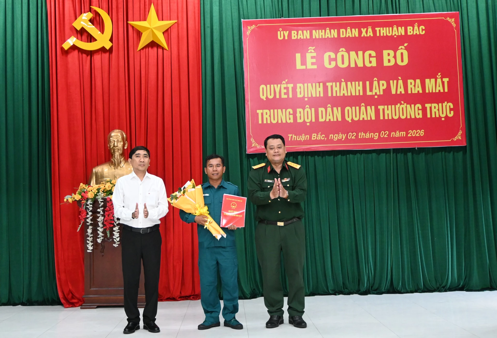 Chiều 2-2, xã Thuận Bắc tổ chức lễ công bố quyết định thành lập và ra mắt Trung đội Dân quân thường trực thuộc Ban Chỉ huy Quân sự xã.