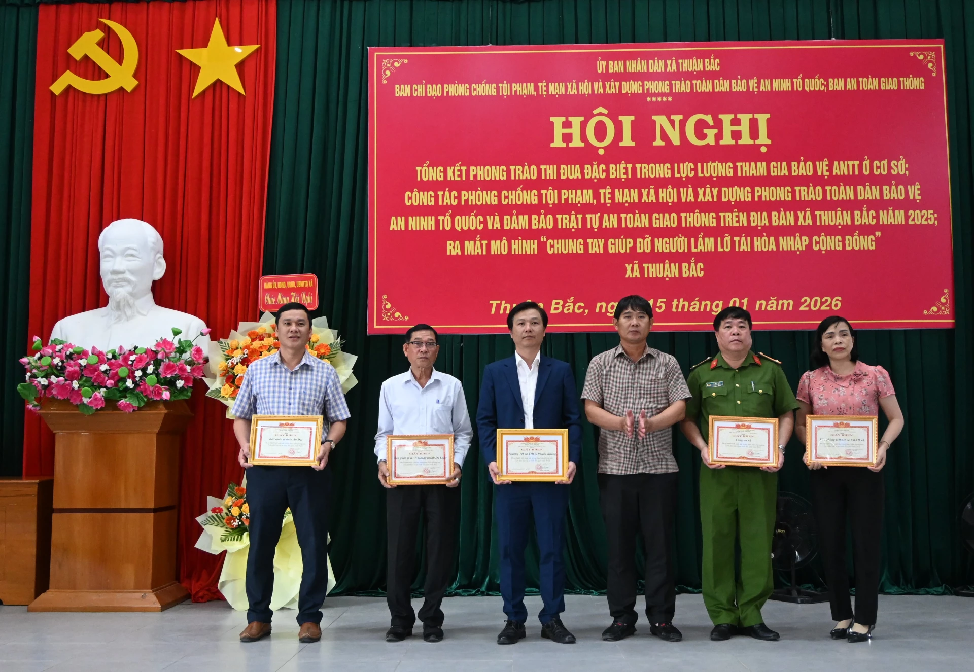 Dịp này, Giám đốc Công an tỉnh Khánh Hòa tặng giấy khen cho 1 cá nhân; UBND xã Thuận Bắc tặng giấy khen cho 5 tập thể, 20 cá nhân có thành tích xuất sắc tiêu biểu trong phong trào thi đua đặc biệt trong lực lượng tham gia bảo vệ an ninh, trật tự cơ sở năm 2025.